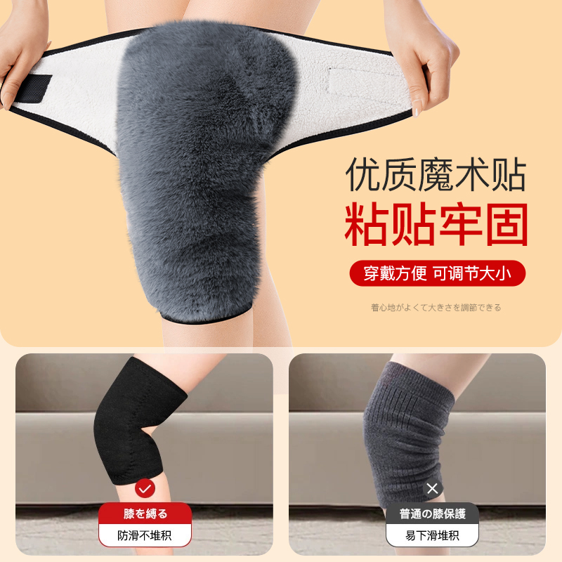 双粘扣魔术贴保暖护膝秋冬护关节专用加绒加厚防寒护膝下滑保护套