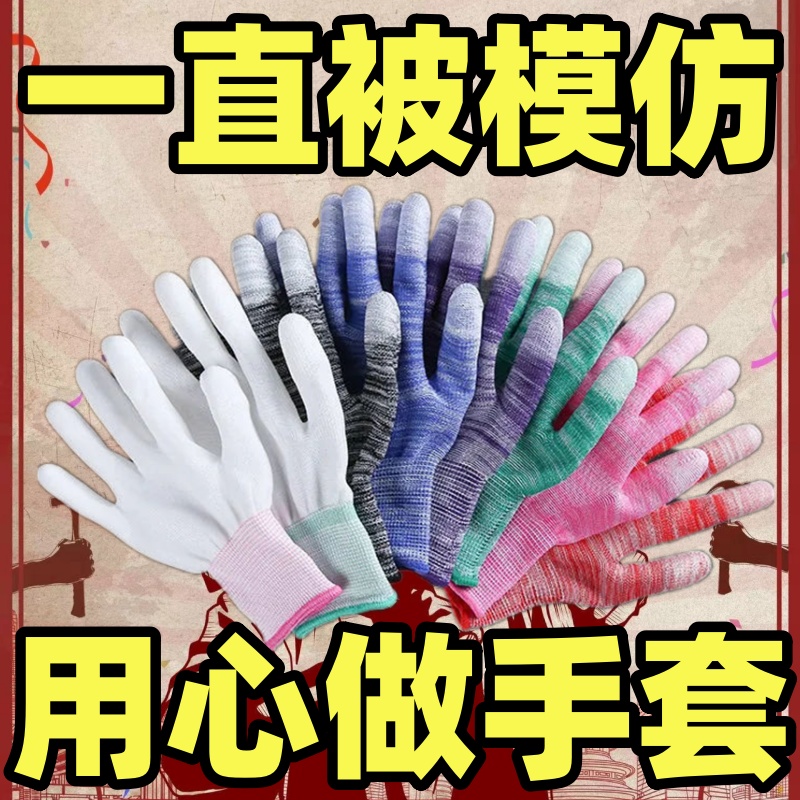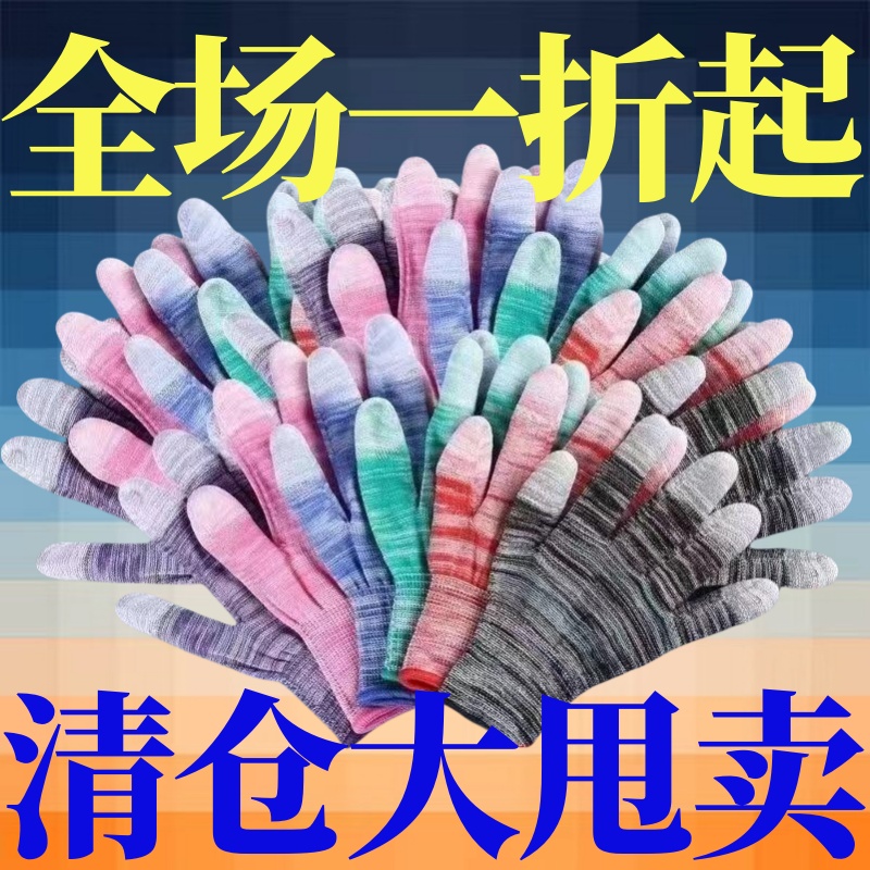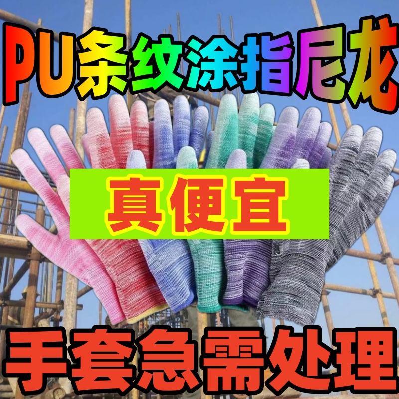 薄款 尼龙耐磨防滑PU涂指手套涂胶工厂防静电劳保工作手套批发实惠