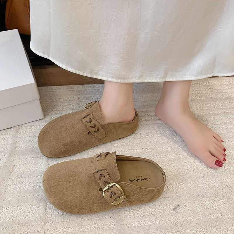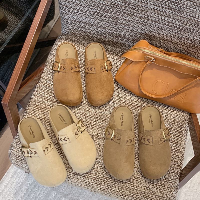 家家乐包头半拖鞋 半包 女夏外穿家居防滑凉拖包脚静音软底洞洞凉鞋
