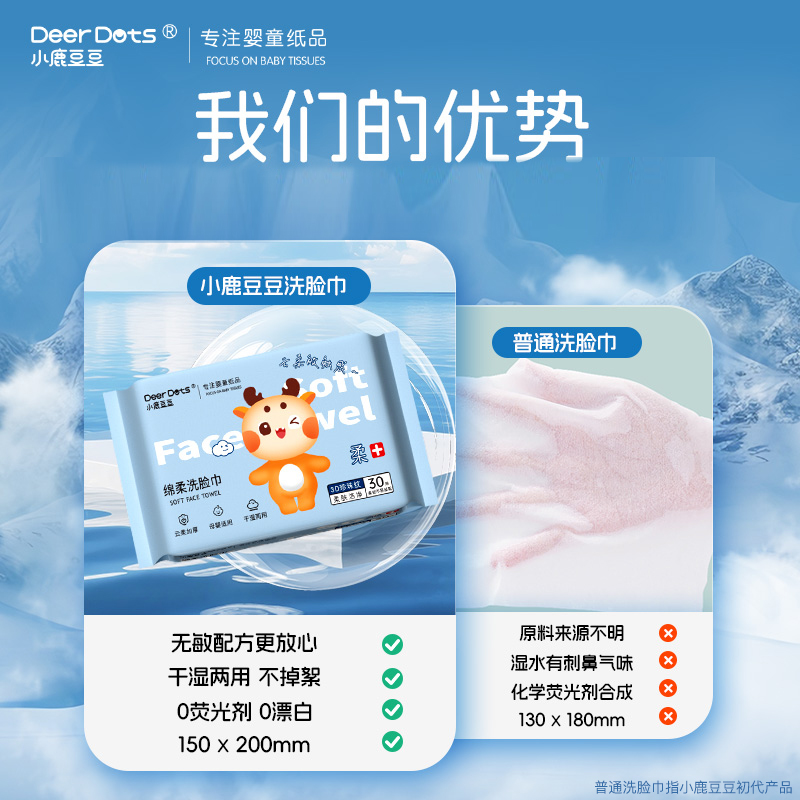 小鹿豆豆绵柔巾亲肤洗脸巾一次性抽取加大加厚母婴适用棉柔洁面巾