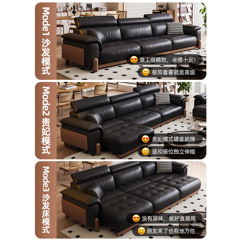 家美康朝木语真皮电动沙发床中古复古风客厅可躺睡调节零靠墙沙发