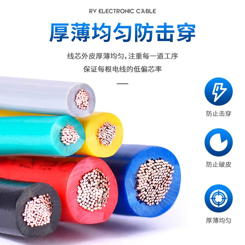线多股铜芯软线 纯铜RV电线 0.75平方电子线 0.5 线讯号线 线0.3
