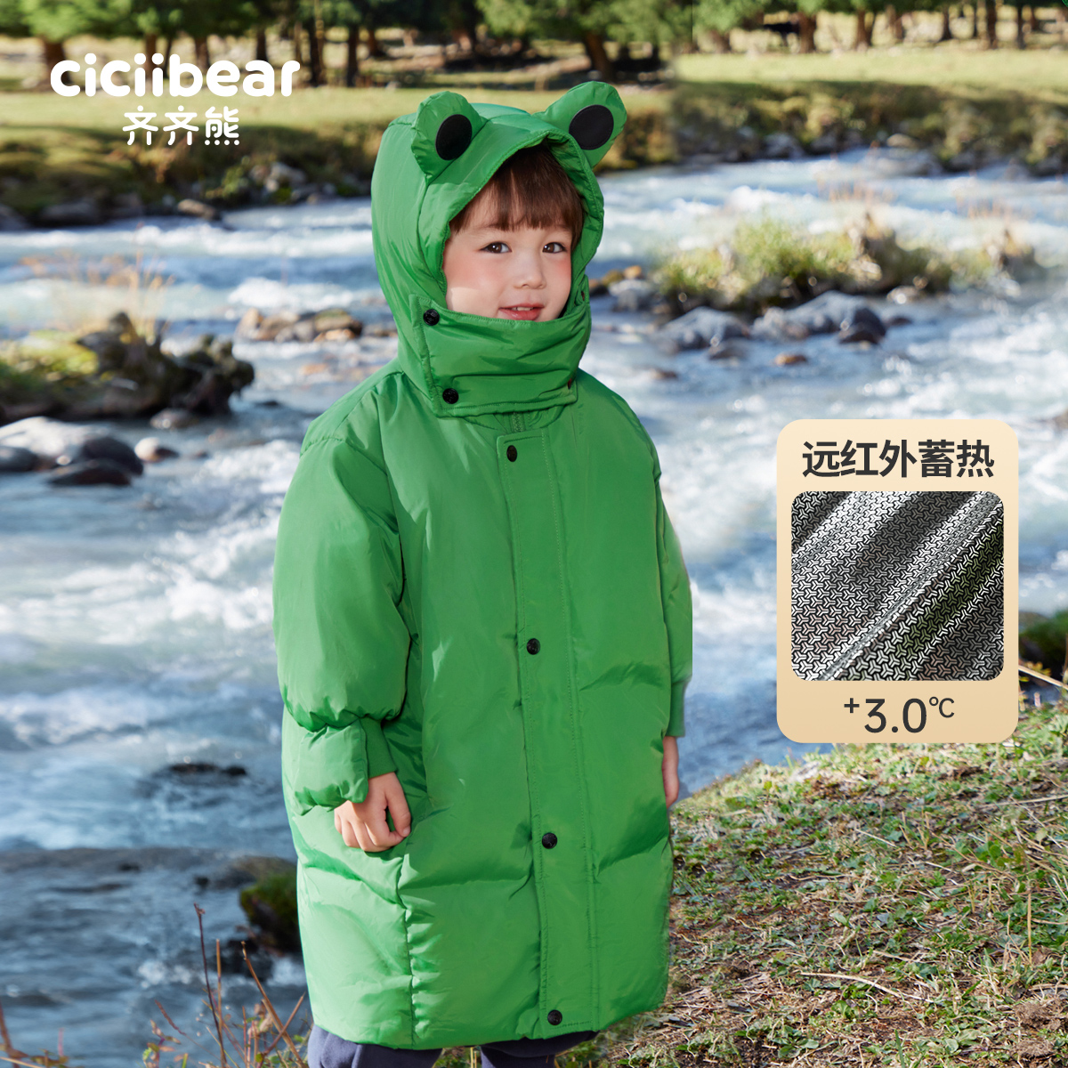 外套宝宝冬季 齐齐熊男童羽绒服中长款 加厚保暖儿童女童 三防蓄热