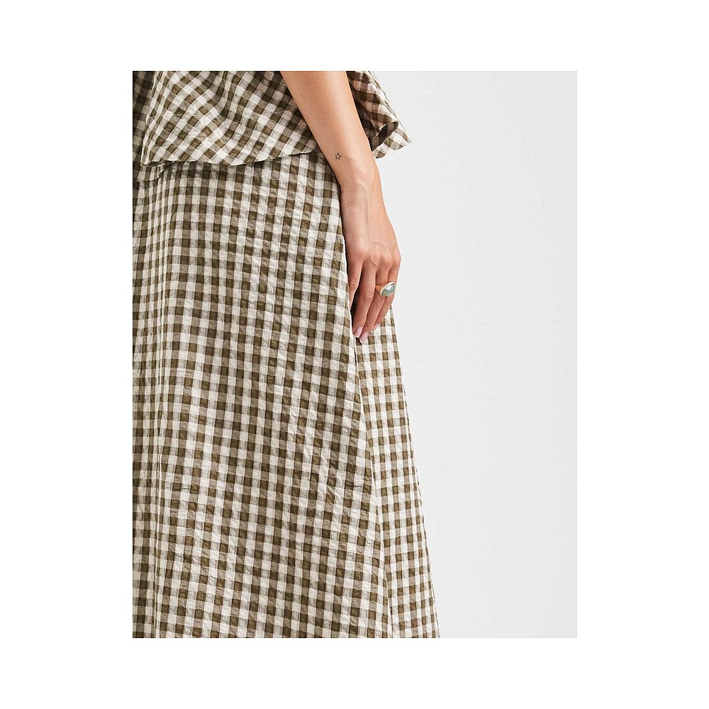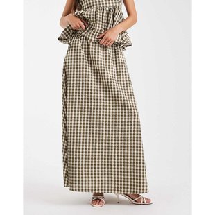 MOCO半身裙红黑格苏格兰格纹不规则毛边大裙摆附腰带摩安珂