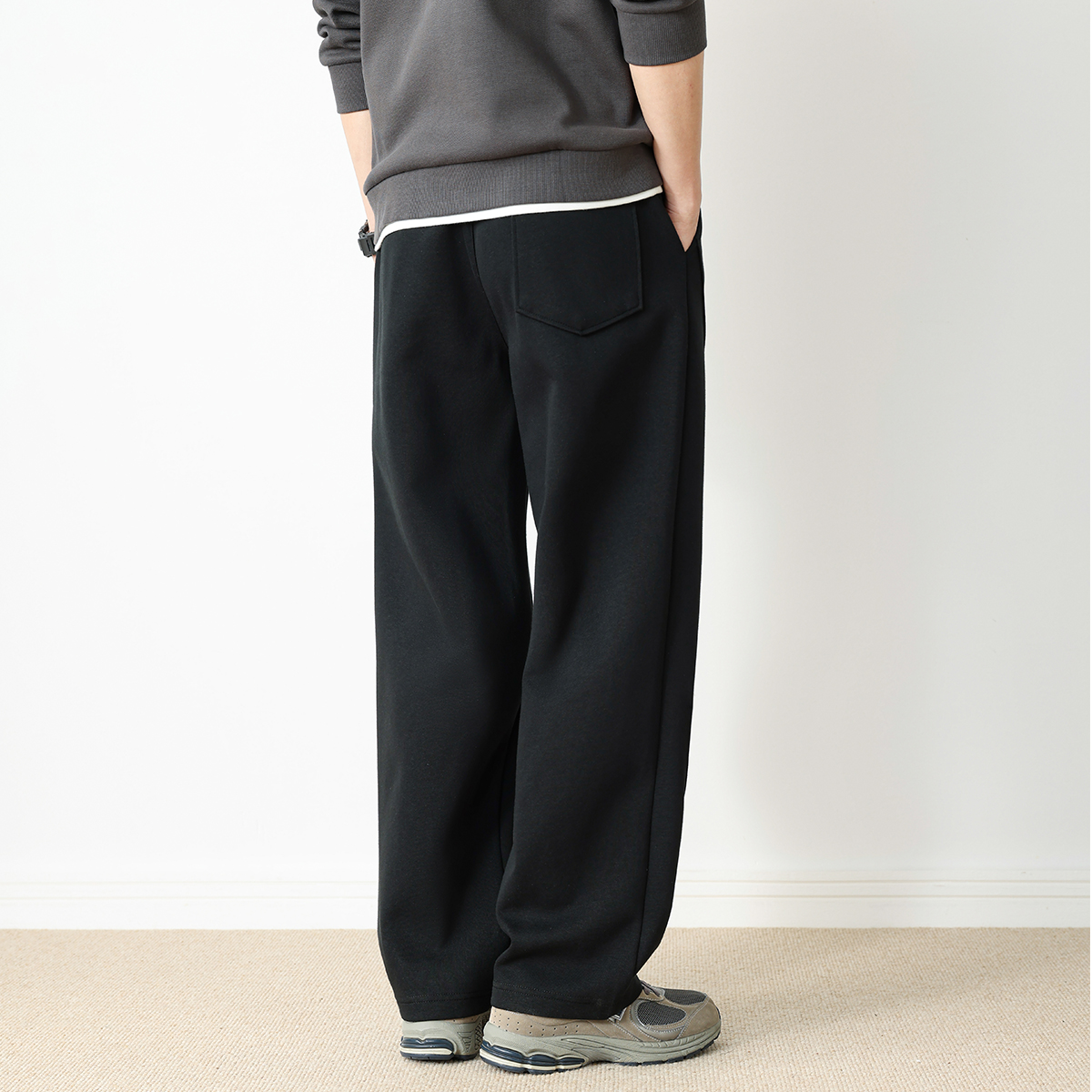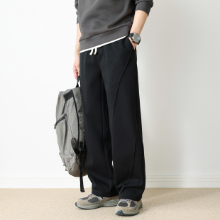 宽松阔腿百搭休闲裤 潮流垂感运动长裤 男秋季 V37重磅黑色直筒卫裤