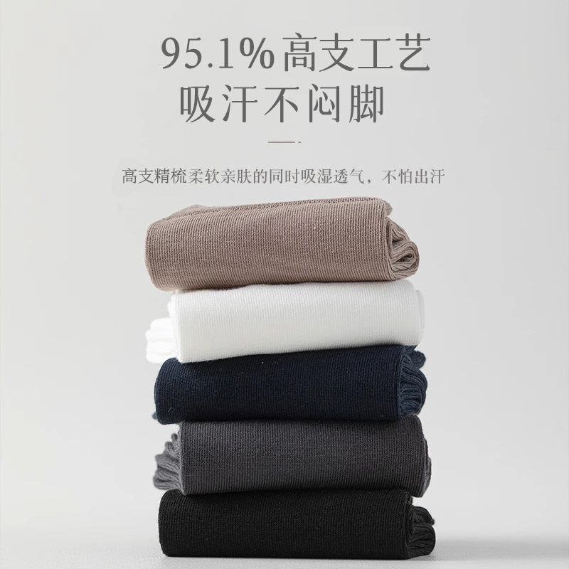 棉伙棉伴海藻袜舒适抗菌防臭男女商务运动纯色裸感中筒袜