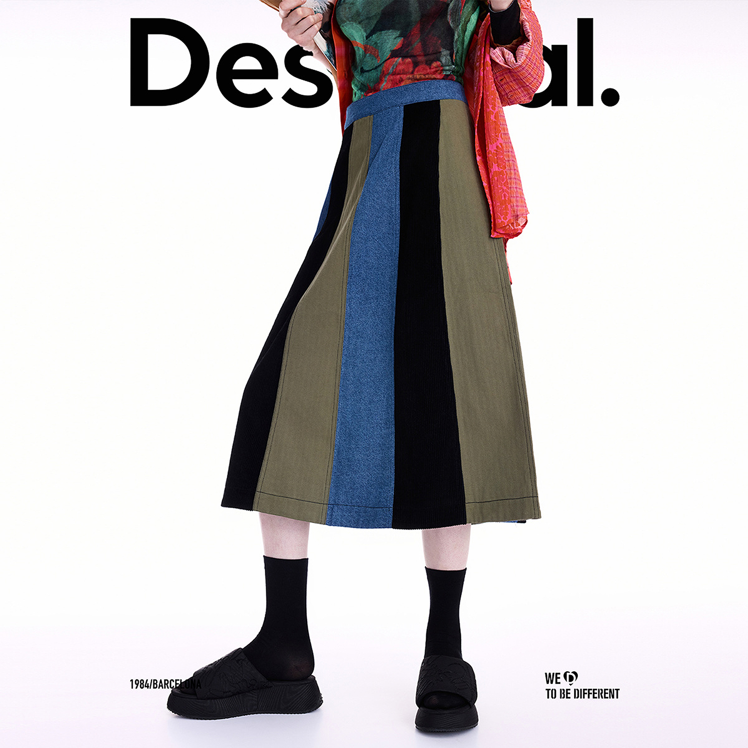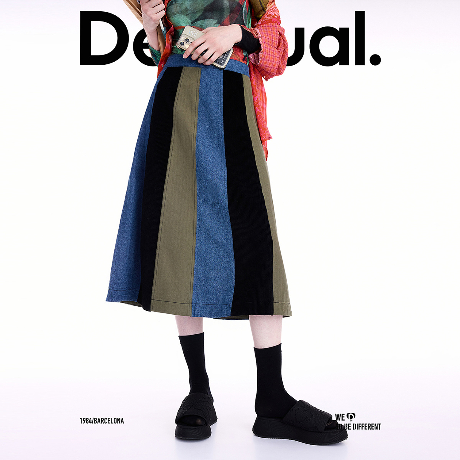 A字撞色牛仔拼接半身裙 25秋冬新品 Desigual大西瓜 博主同款