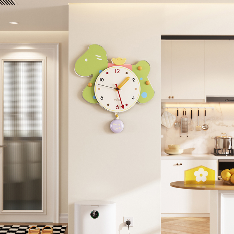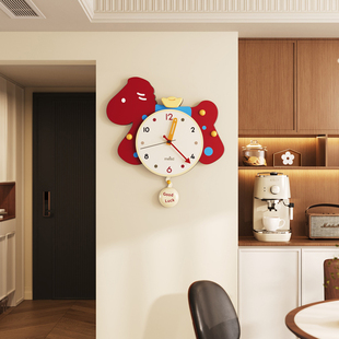 美世达创意小马客厅挂钟家用静音钟表奶油风时钟挂墙高级感挂表
