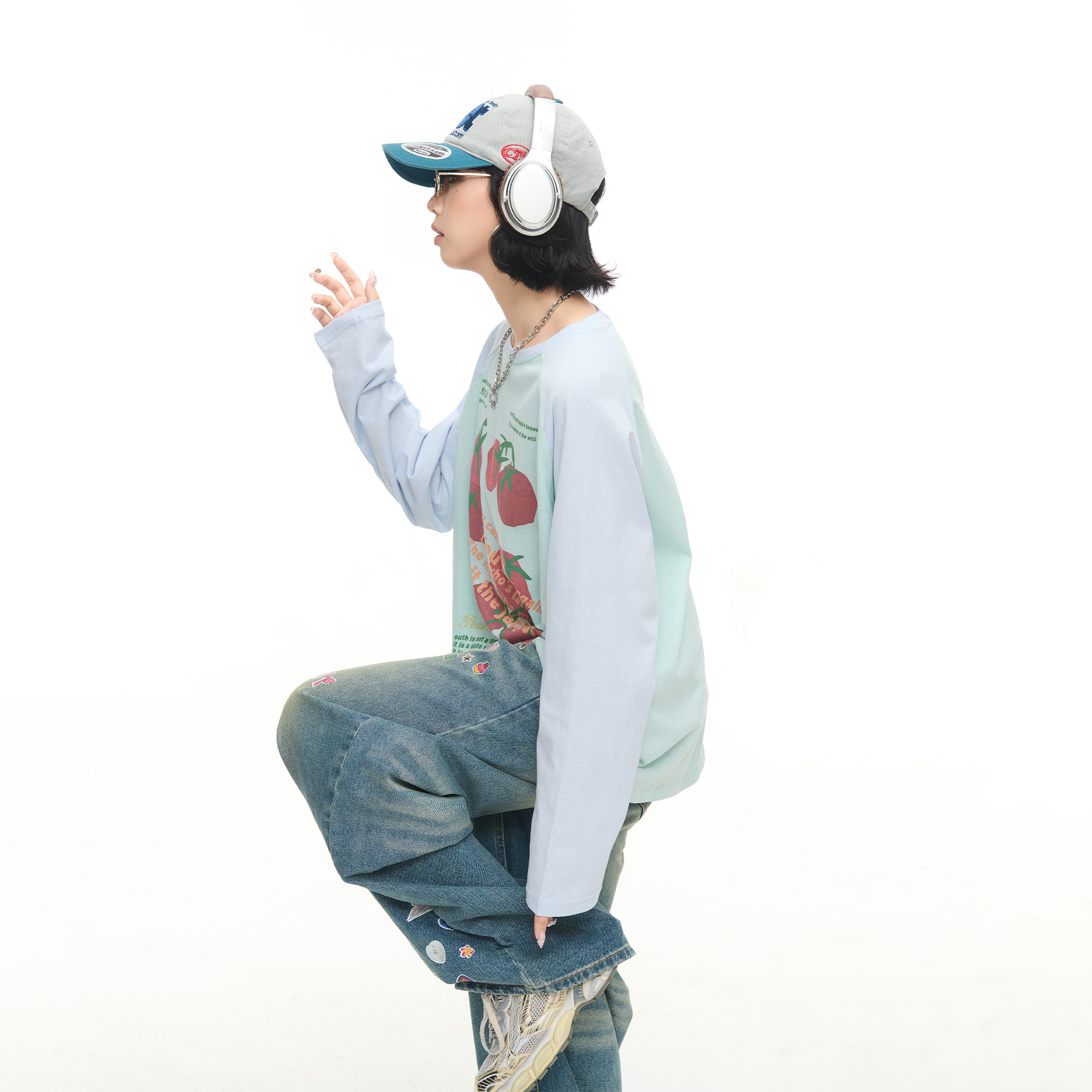 小猪大卫春秋宝宝圆领长袖 子秋衣秋裤 纯棉单上衣裤 3岁 T恤打底衫