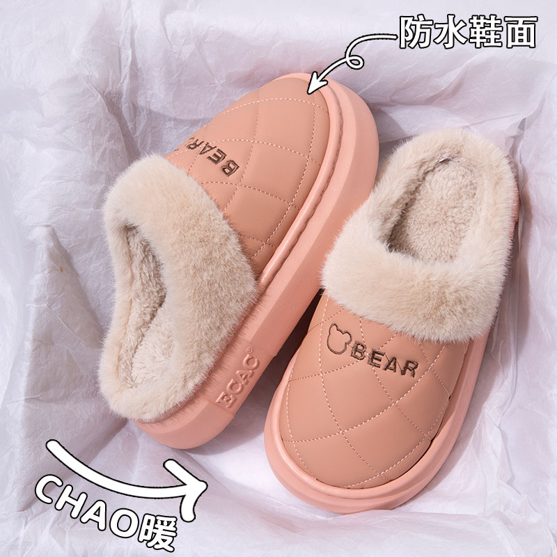 家居室内加绒保暖外穿厚底毛绒拖鞋 防水棉拖鞋 2025新款 秋冬季 女款