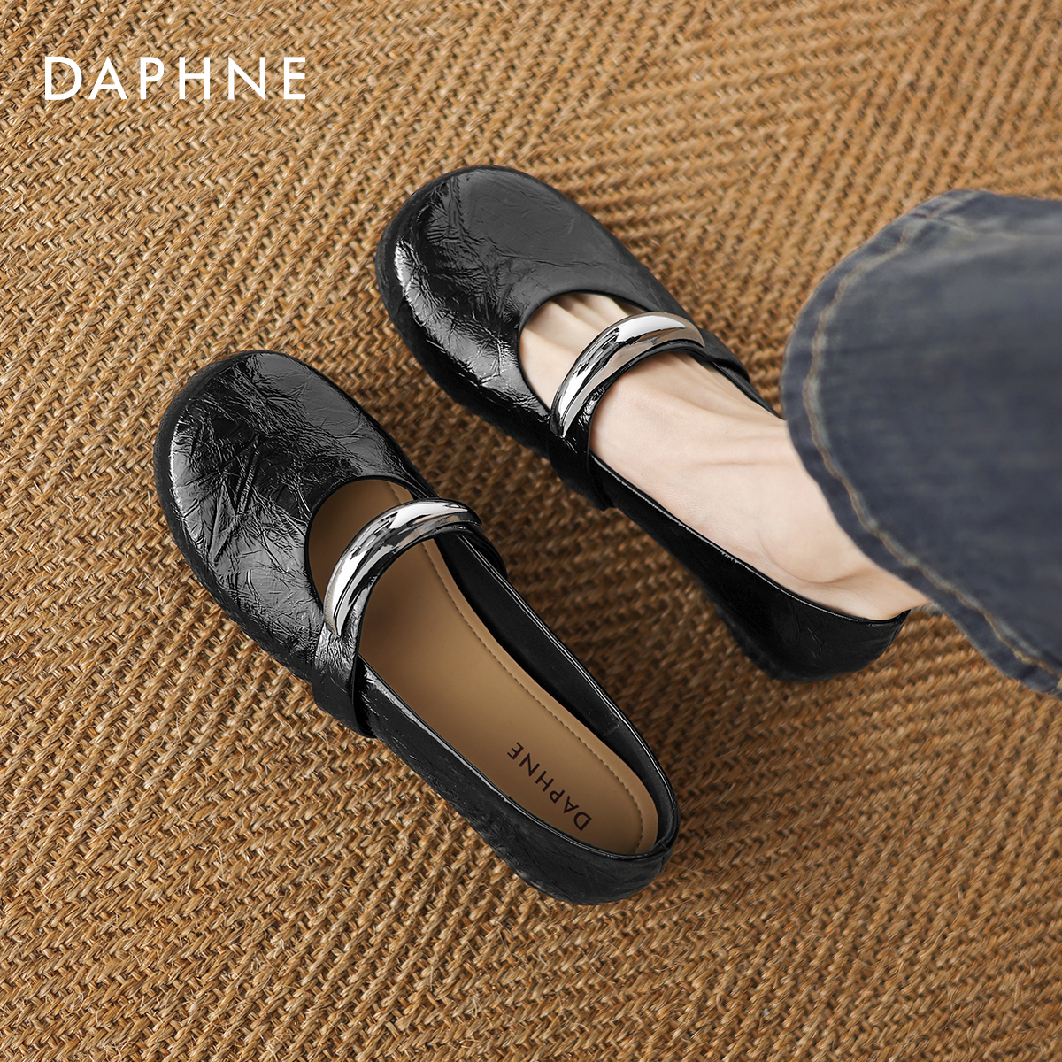 2025新款 内增高鞋 秋季 软底小皮鞋 子 芭蕾单鞋 达芙妮黑色玛丽珍女鞋