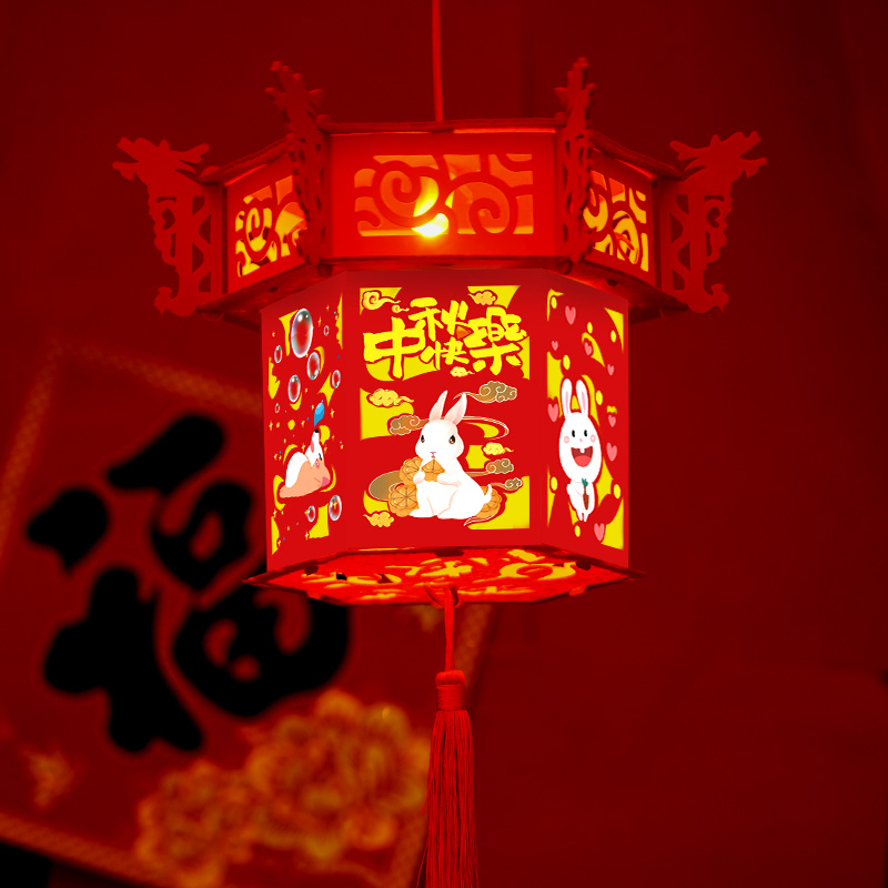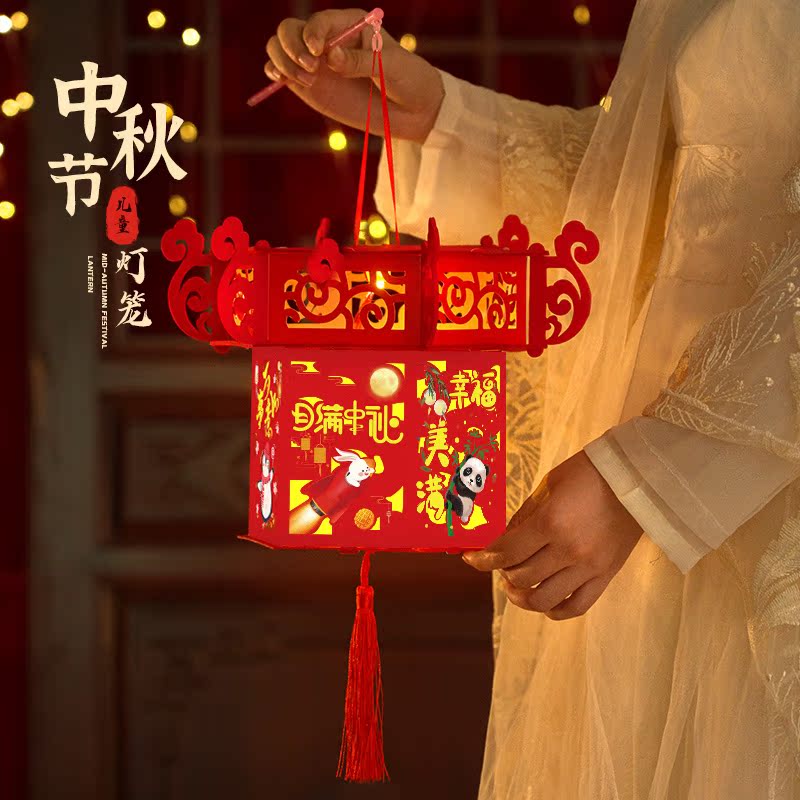 中秋手工灯笼diy制作材料包儿童幼儿园手提投影走马灯古风花灯