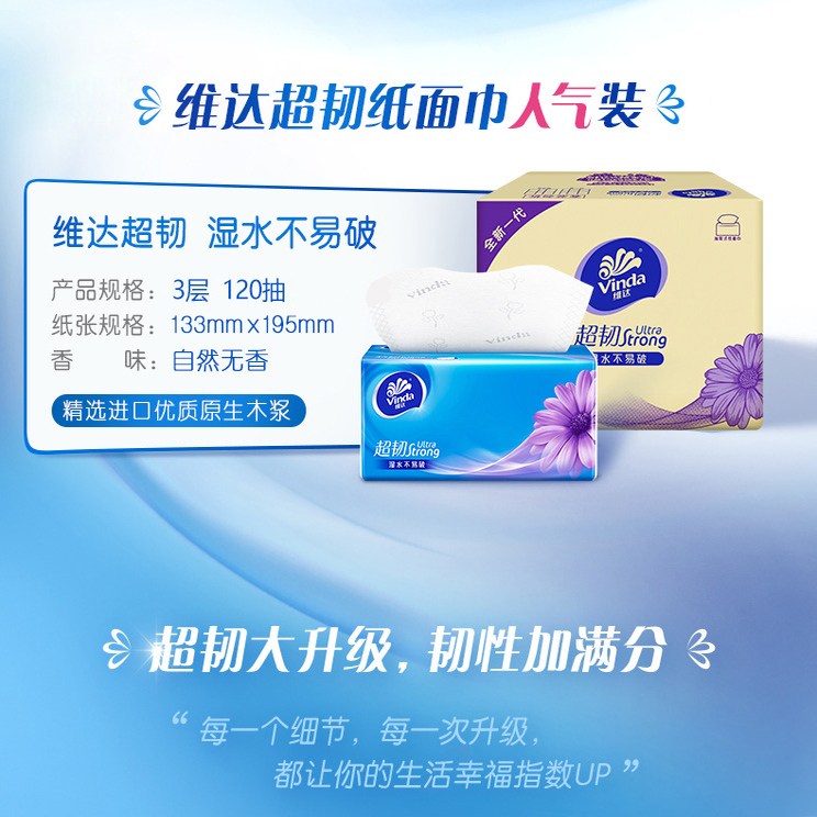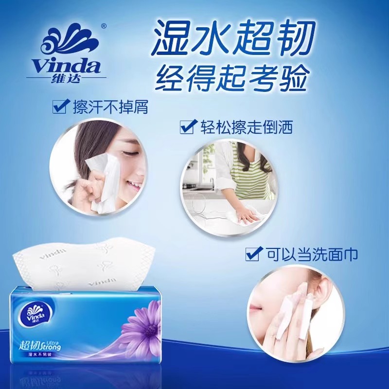 维达超韧抽纸100抽厚实婴儿面巾纸餐巾纸卫生纸 攒满3包起发
