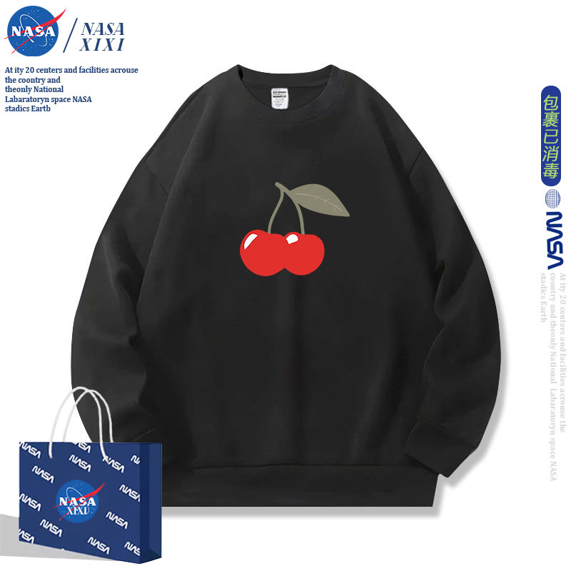 宽松慵懒风外套加绒衣服 秋冬季 NASA刘亦菲同款 圆领卫衣女2025新款