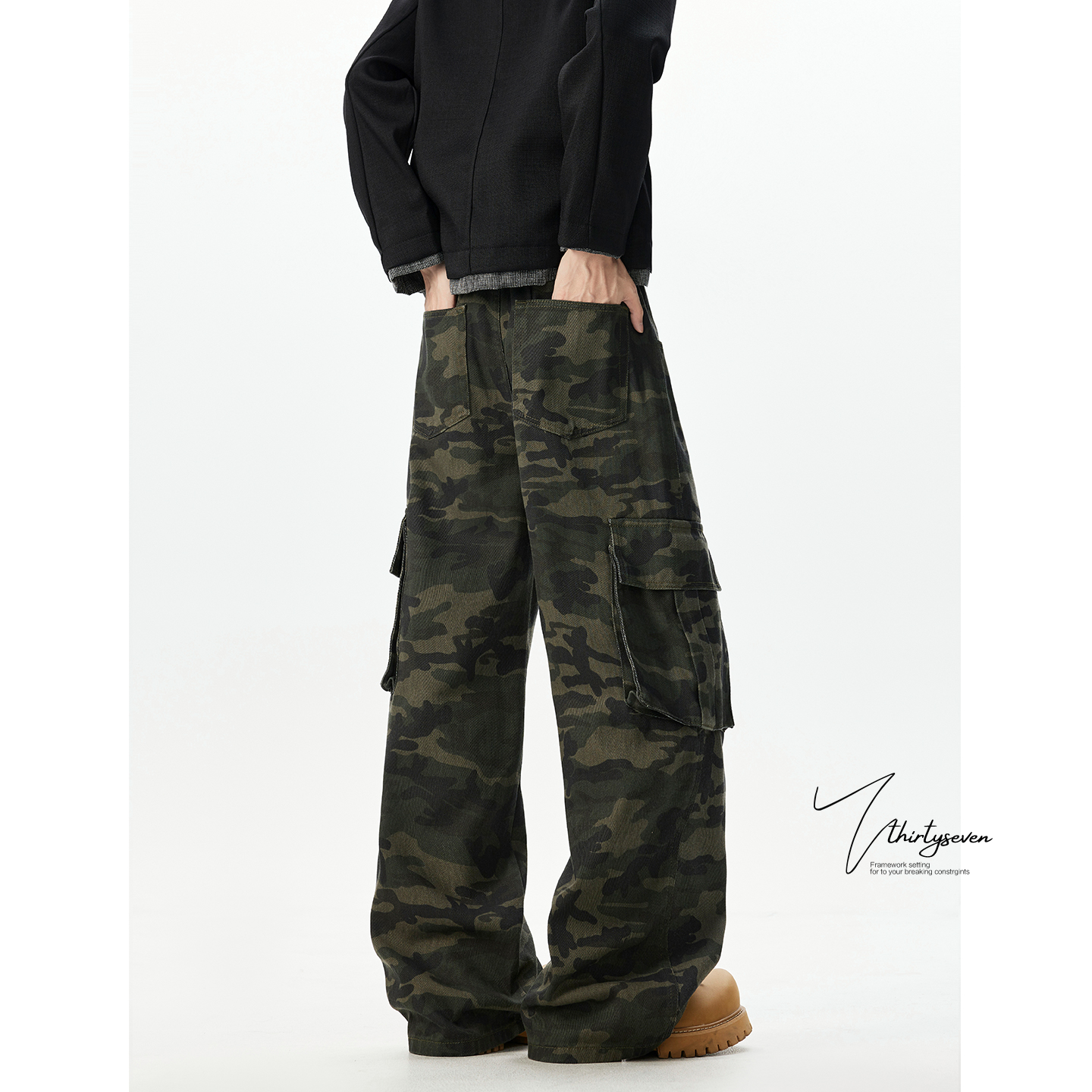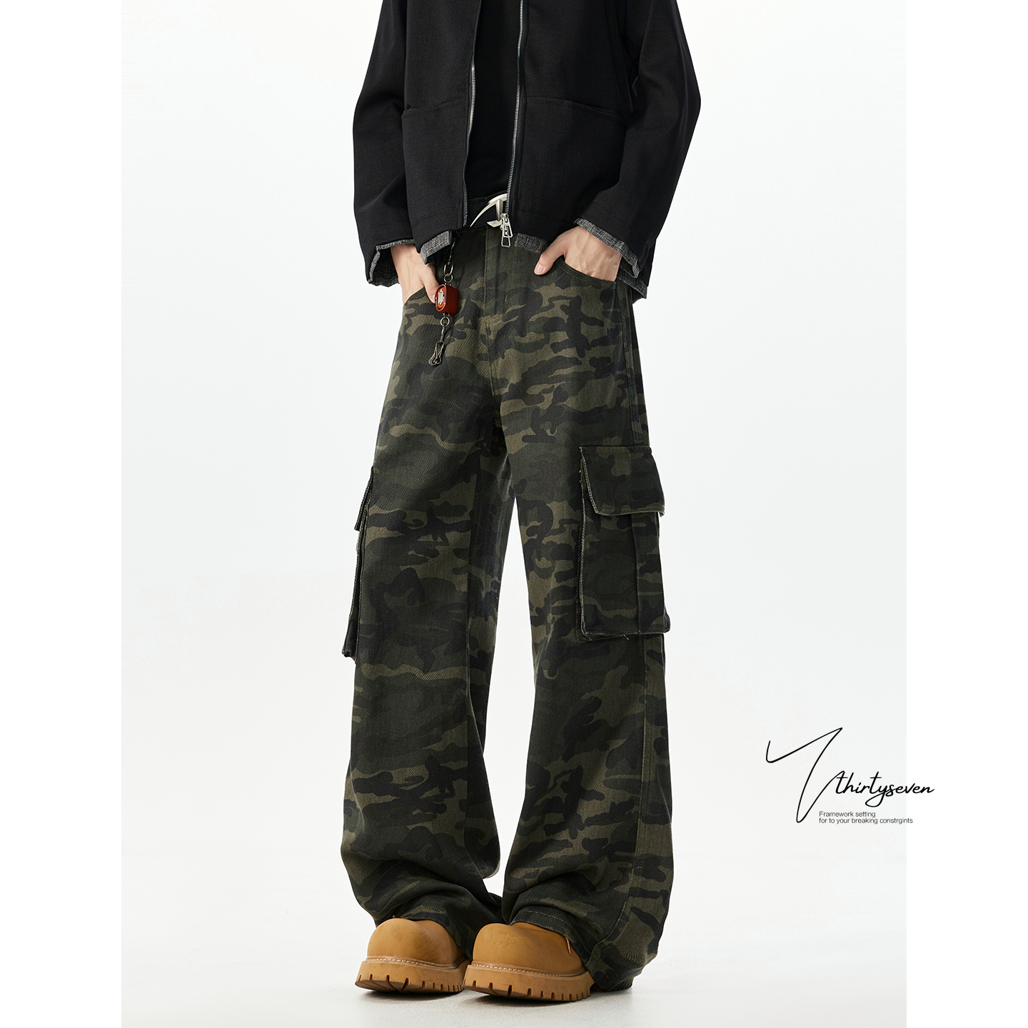迷彩工装 vibe宽松百搭长裤 休闲裤 潮牌大口袋阔腿裤 男秋季 V37美式