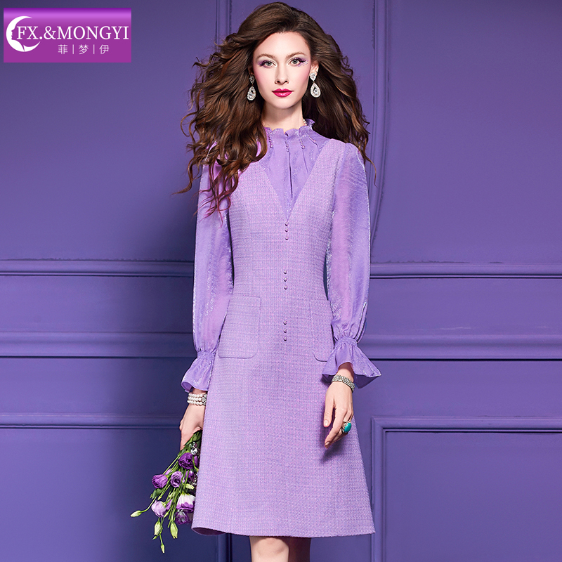 连衣裙女YEYQL038 文艺翻领小清新格纹中长款 依伽依佳2021秋季 新款