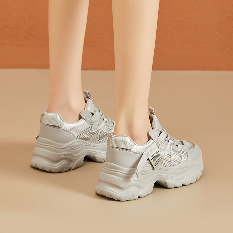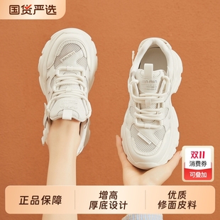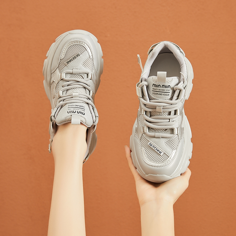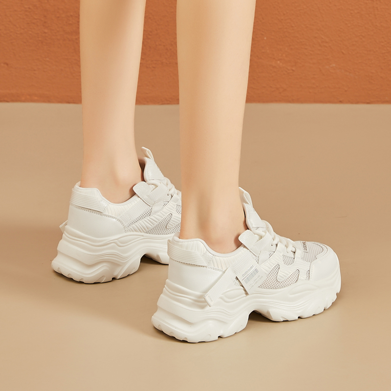 轻便百搭增高6cm女鞋 2025夏季 百搭运动鞋 厚底网面透气休闲老爹鞋