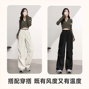 女2025新款 裤 秋冬宽松大码 伞兵裤 班尼路美式 慵懒阔腿休闲裤 工装