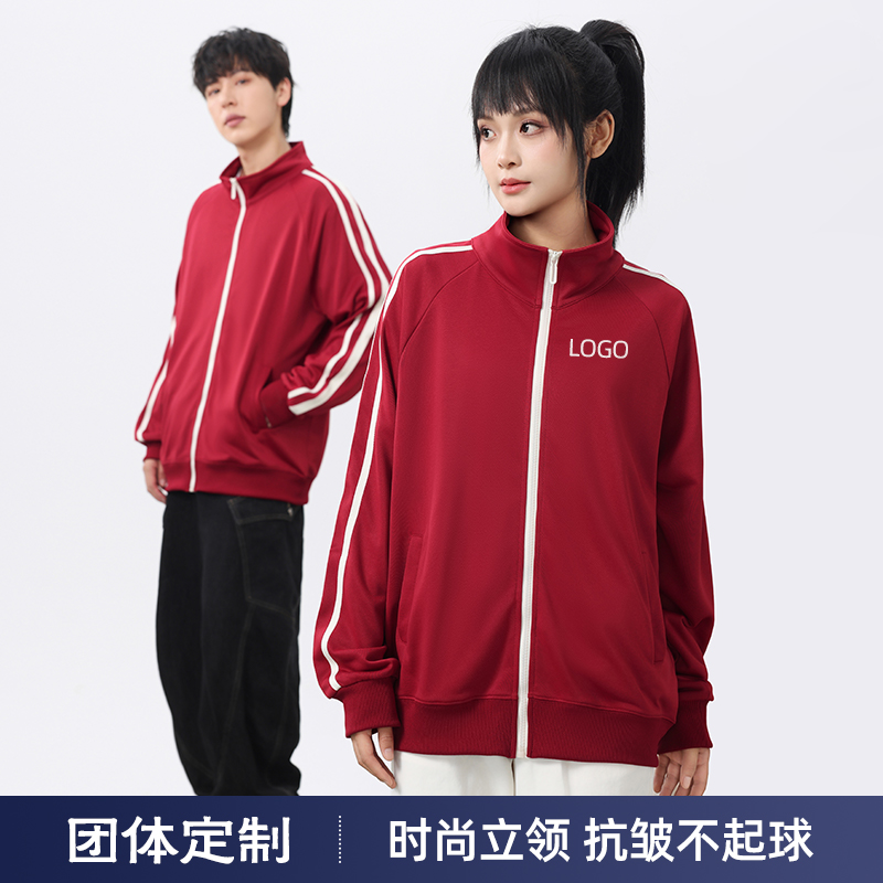 条纹运动外套设计印字团体立领工作服卫衣定制logo班服文化衫 印图
