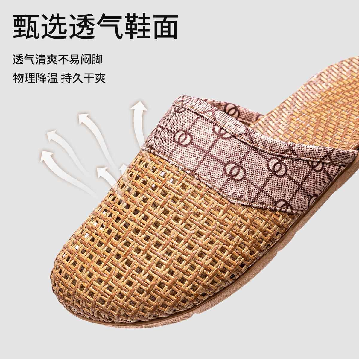 老人防滑拖鞋 男 亚麻包头女士室内居家居防摔轻便透气藤编草织凉鞋