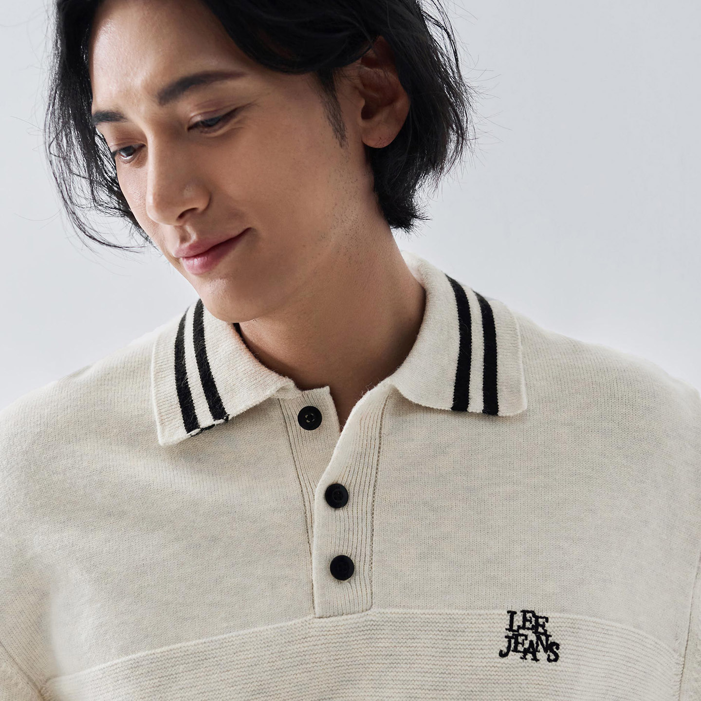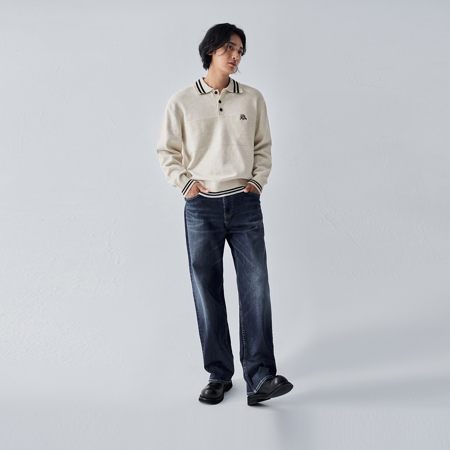 新款 HLA 25秋季 wowo熊猫翻领针织衫 黑色条纹毛衣男 海澜之家panda
