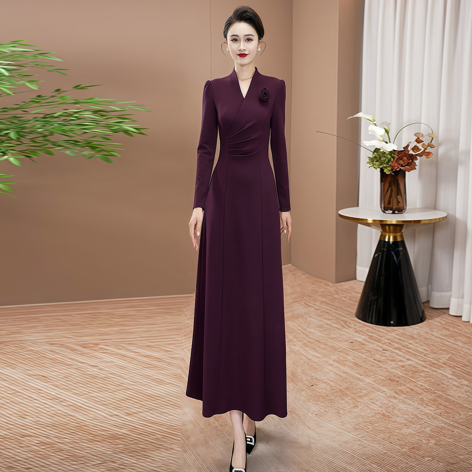 紫涵假两件翻领连衣裙女冬季 学院风设计感宽松休闲百褶短裙子 新款
