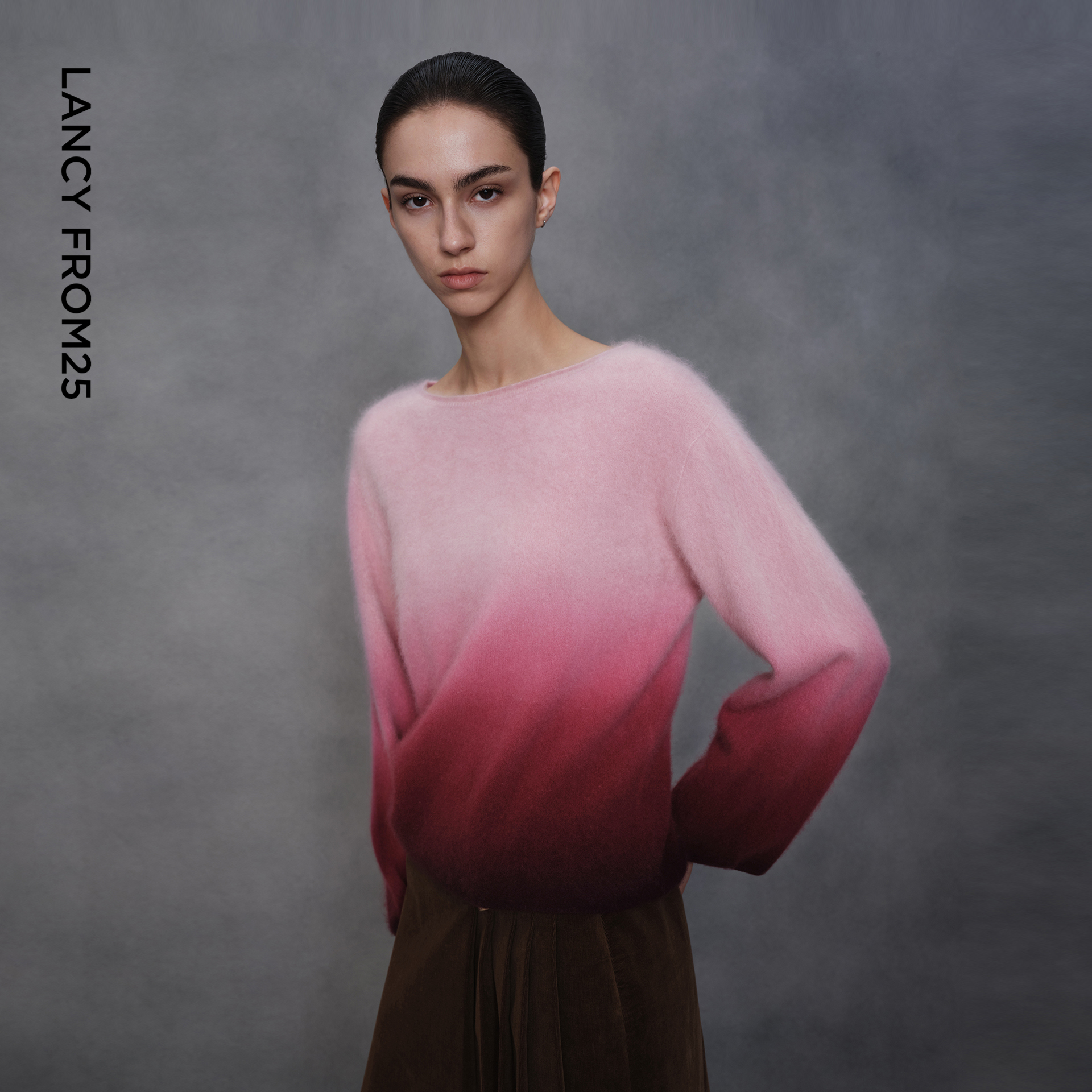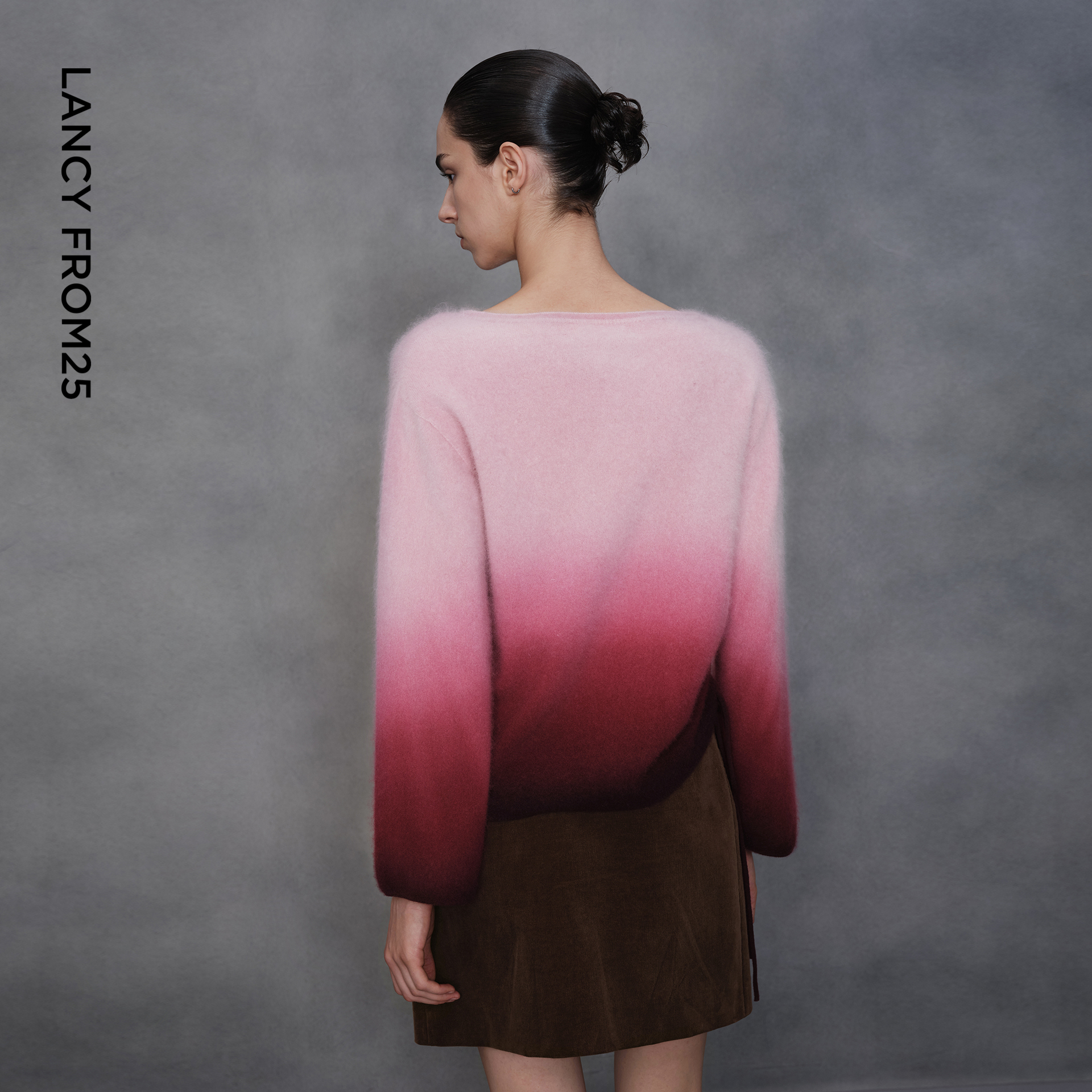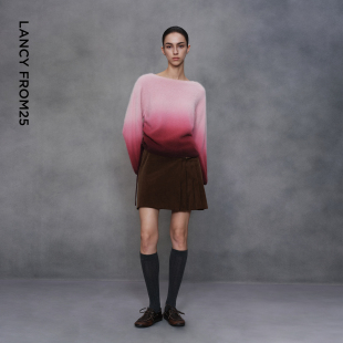 通勤风短款 朗姿纯羊毛设计感渐变色毛针织衫 毛衣女 艺术家联名