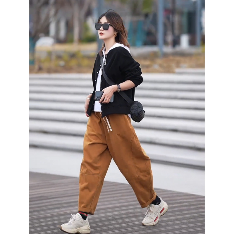 款 哈伦裤 休闲套装 T恤 宽松显瘦洋气三件套潮 女百搭外套 2025秋季