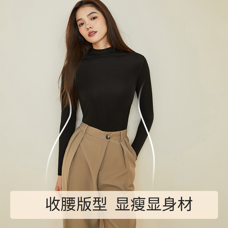 幸棉修身 女 上衣保暖内衣美肤衣发热秋衣内搭堆堆领美雅碧打底衫