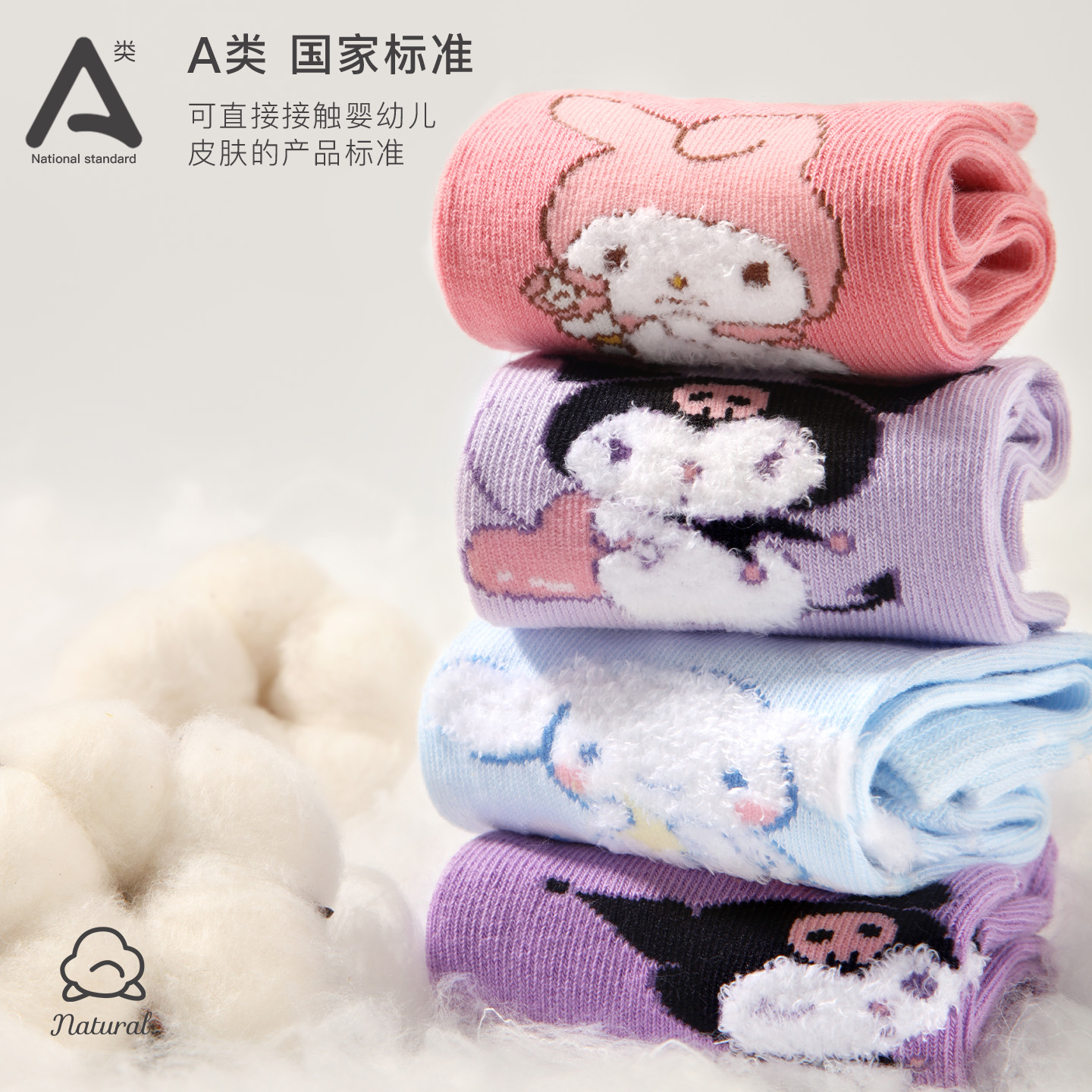 库洛米儿童抗菌袜子25春秋季 棉袜大童长袜女童女孩宝宝中筒袜 新款