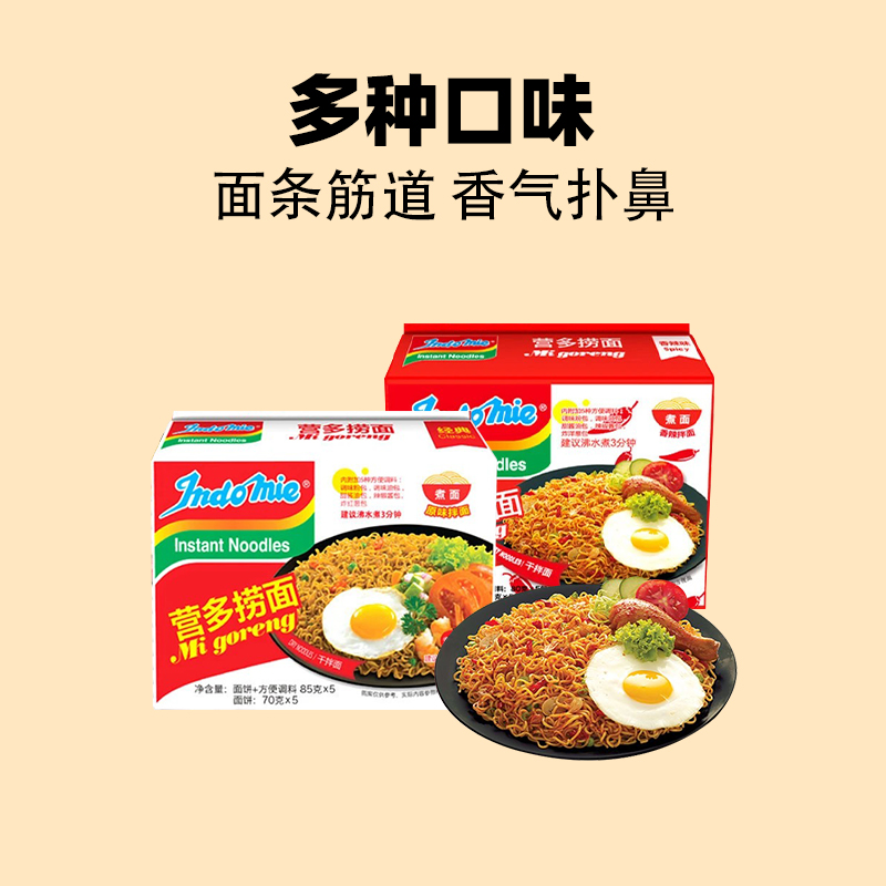 泡面网红香辣味干拌面宿舍夜宵速食 印尼进口营多捞面袋装 自营