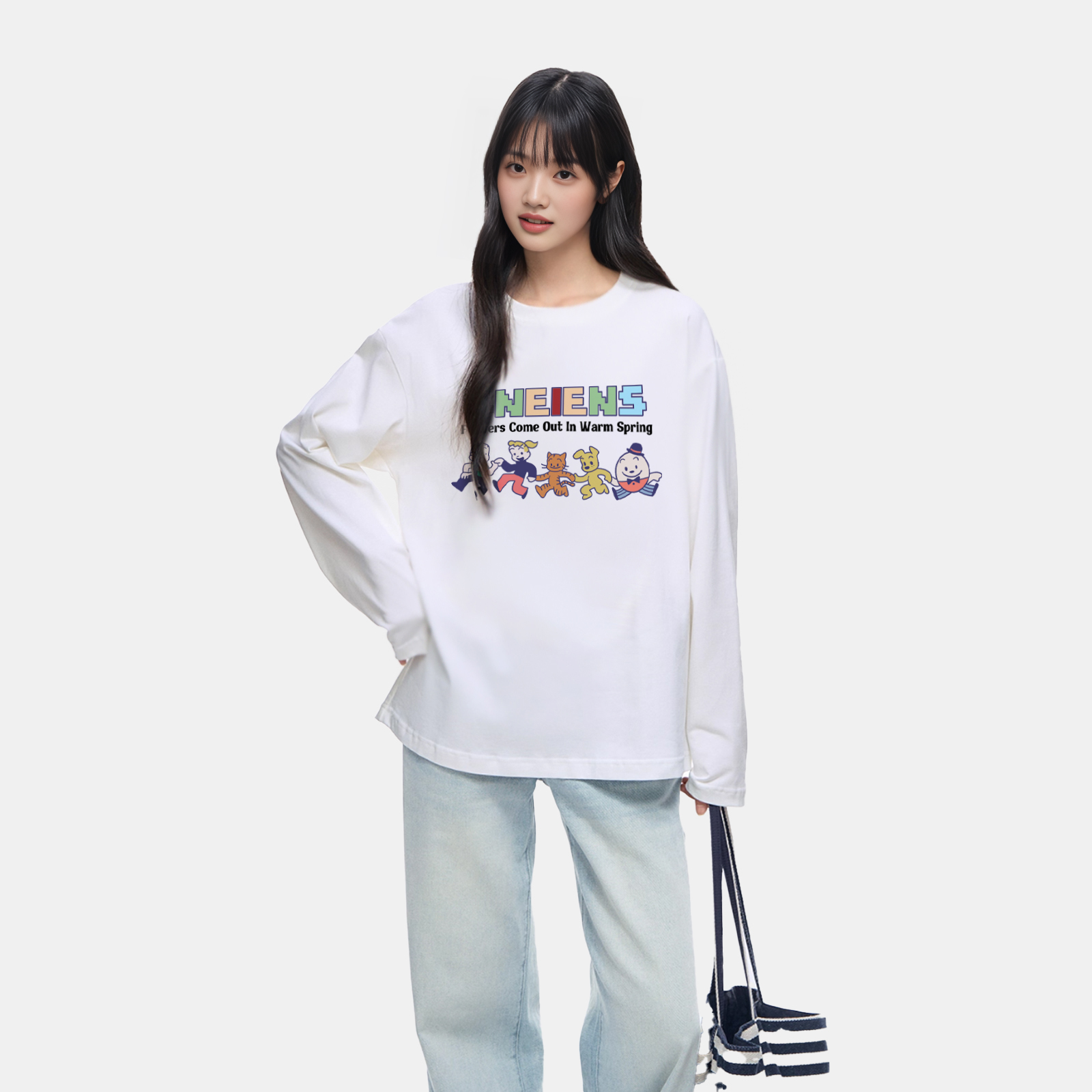 春秋新款 C3087 纯棉卡通玩偶系列胶印T恤男女情侣长袖