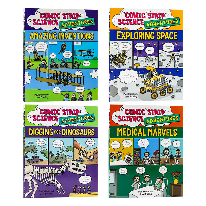 Strip Amazing 4册 Comic 探索太空 奇迹 漫画科学第二季 恐龙化石大战 Science 英文原版 惊人 Inventions Adventures 医学 发明