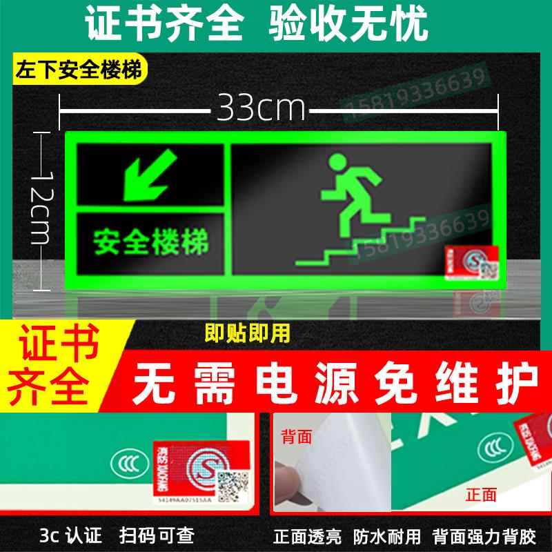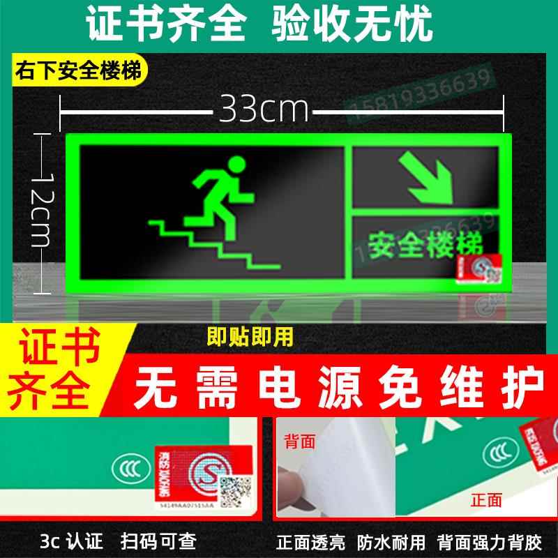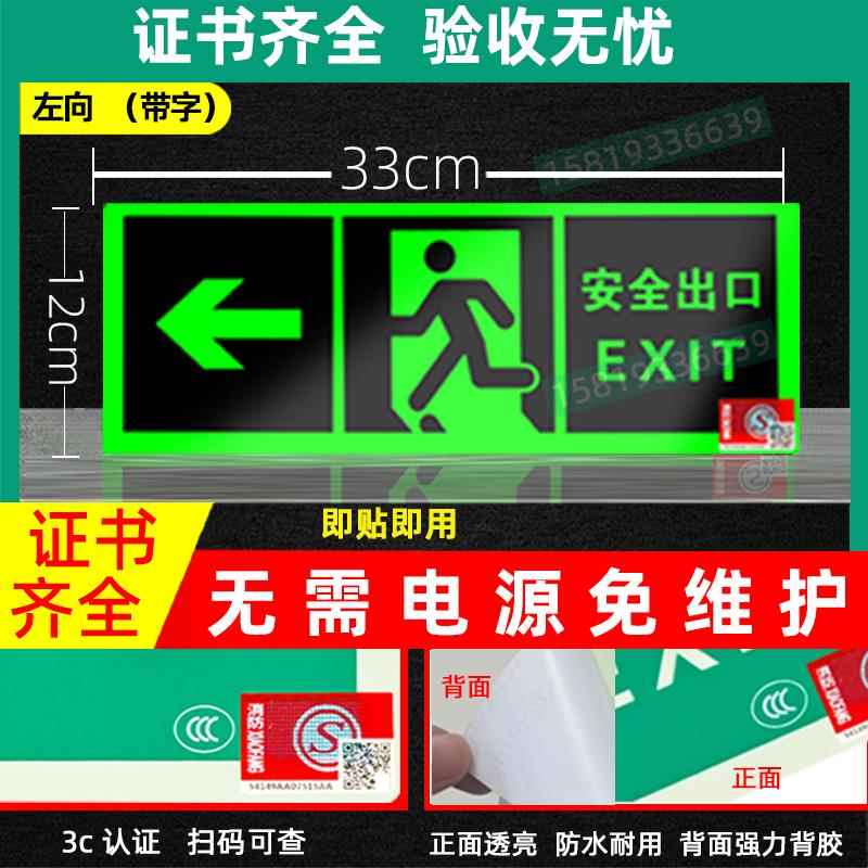 免接电自发光安全出口指示牌荧光夜光墙贴疏散标志灯标识牌贴纸