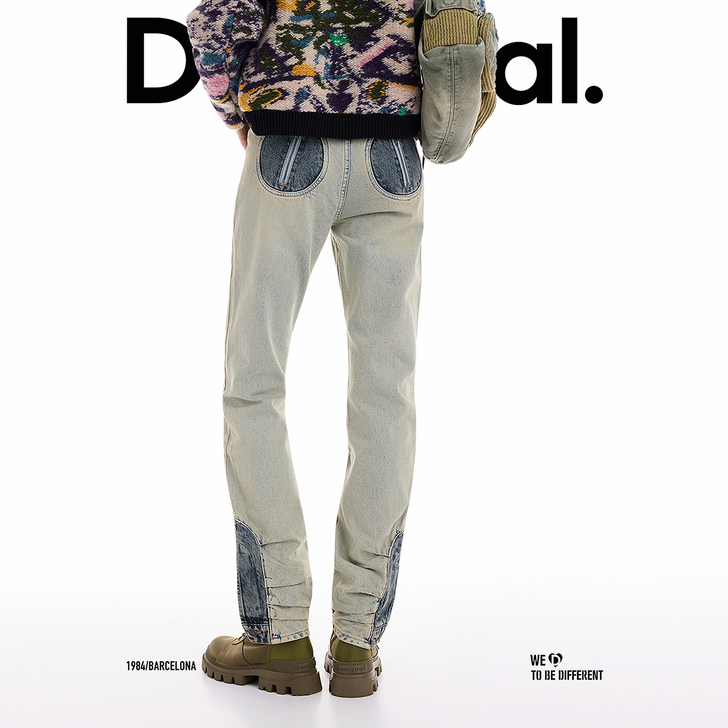 牛仔裤 Desigual25秋冬新品 双色水洗牛仔撞色拼接双腰头女式