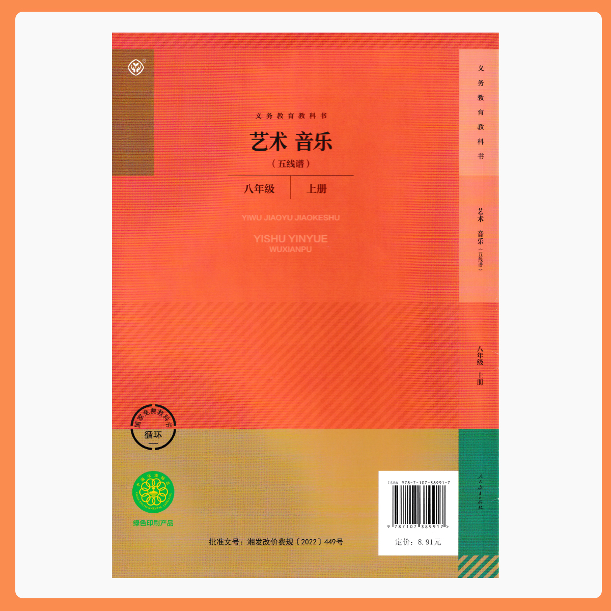 社教科书8上初二上册学生书 艺术音乐八年级上册课本教材人民教育出版 全新2025版 人教版