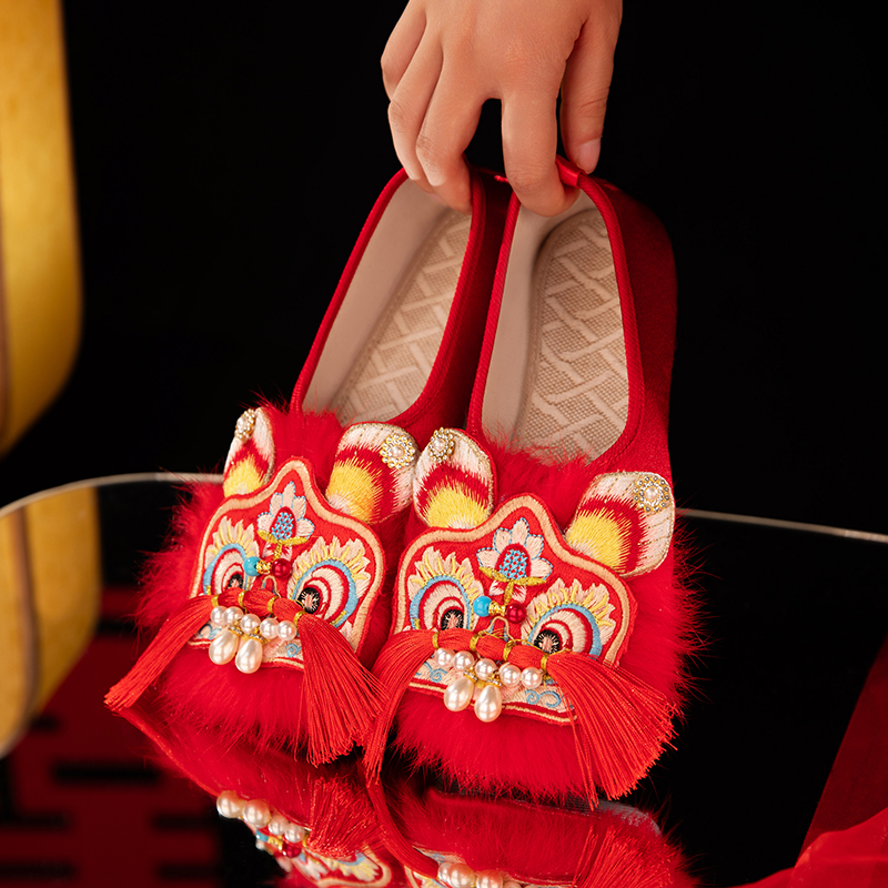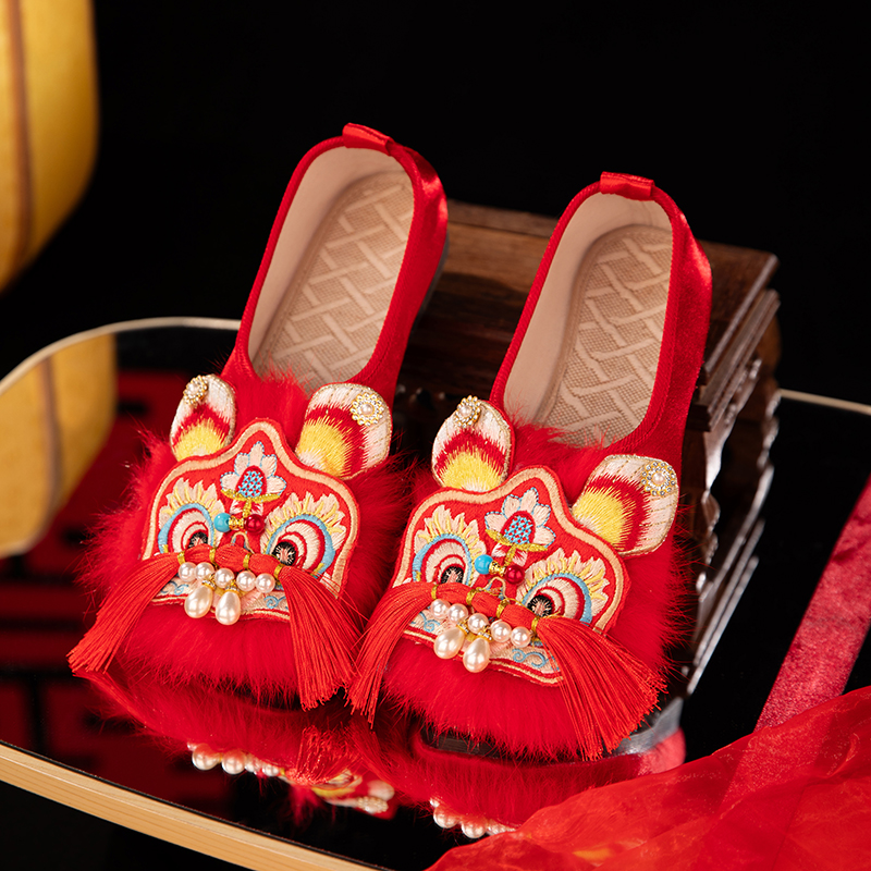 非遗民俗配汉服秀禾婚鞋 新娘结婚晨袍鞋 女外穿中式 红色国潮虎头鞋