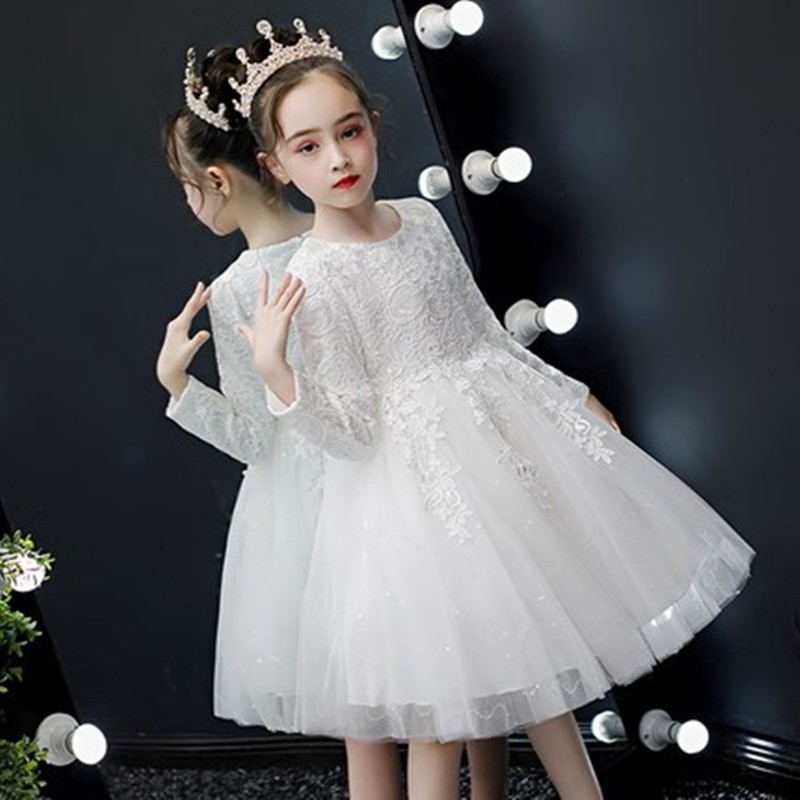 儿童演出服蓬蓬裙女童舞蹈纱裙小学生红歌比赛大合唱服装 朗诵表演