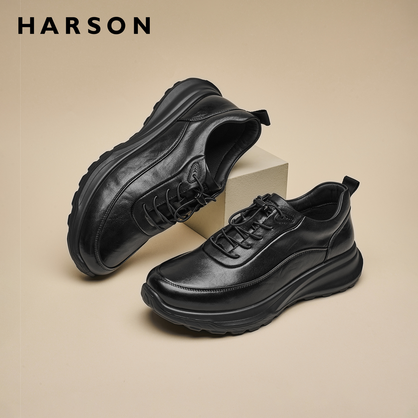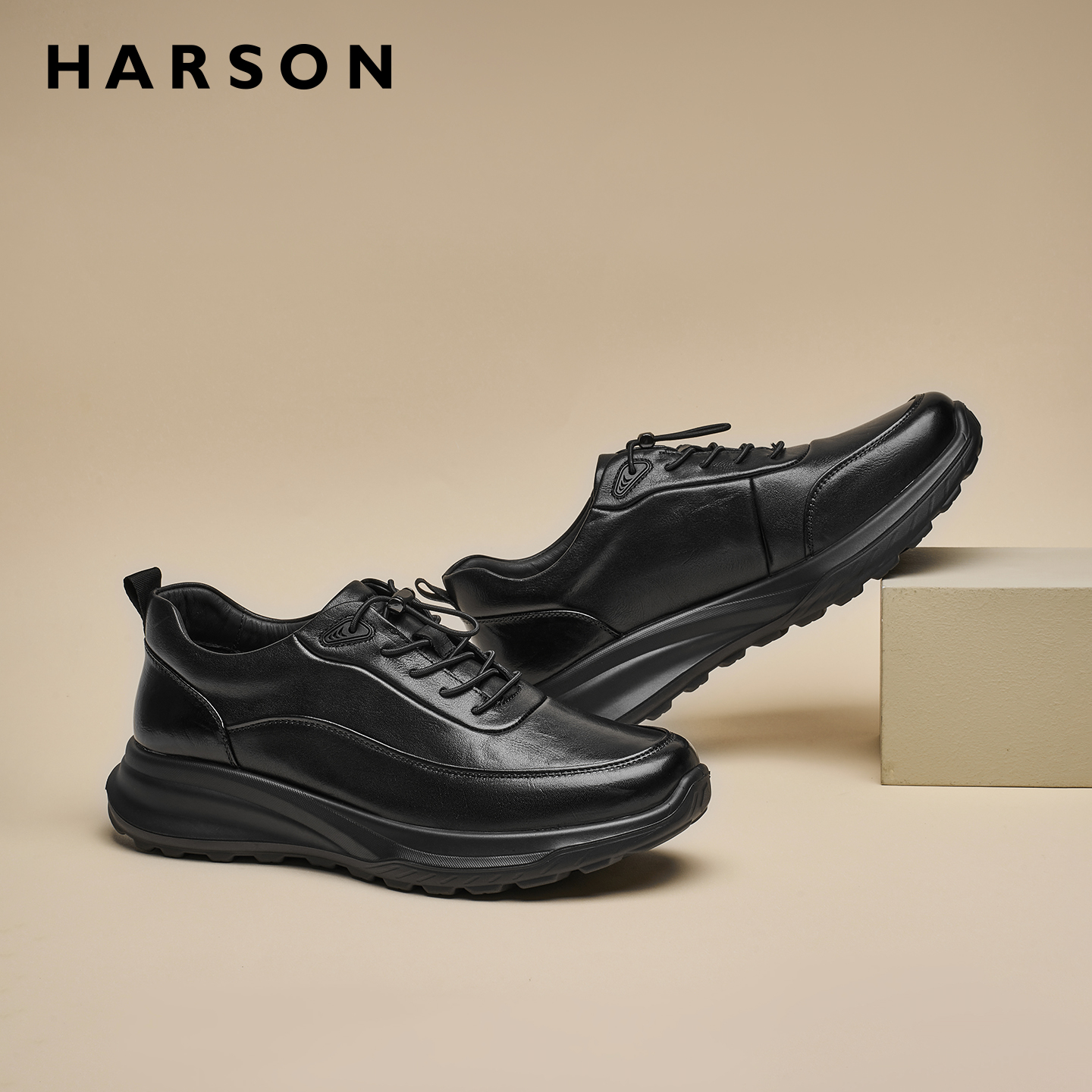 黑武士男士 休闲鞋 真皮商务休闲皮鞋 哈森鞋 运动皮鞋 秋季 男款 子男鞋