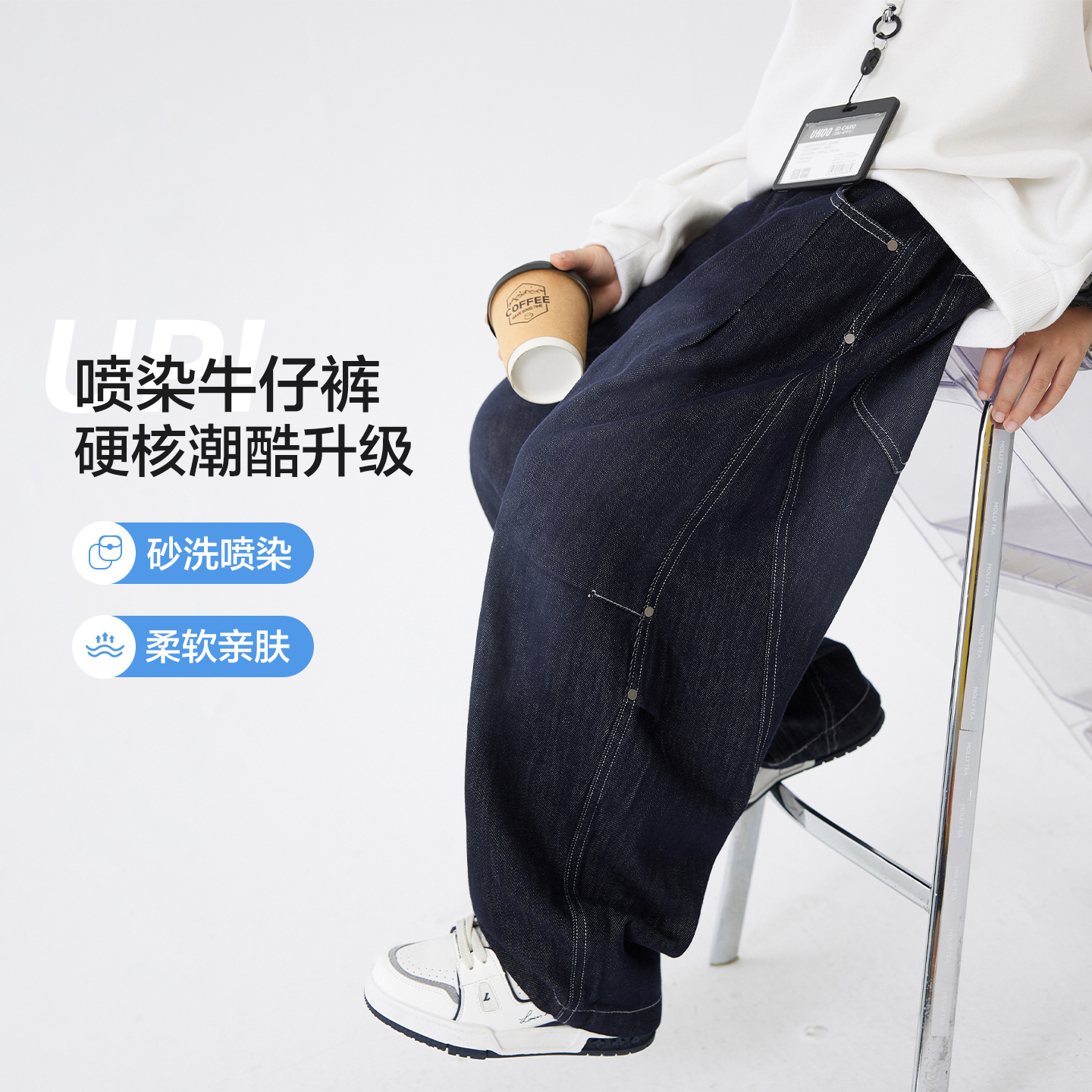 加厚直筒宽松裤 男童秋冬季 儿童男孩冬装 2025新款 子 阔腿加绒牛仔裤