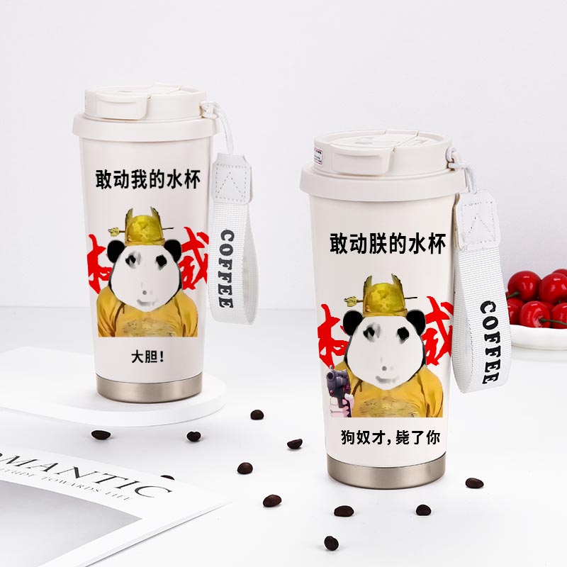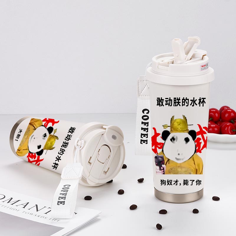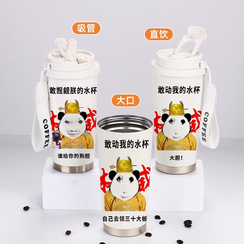 龙图表情包周边保温杯学生上学专用大容量儿童316不锈钢吸管杯子
