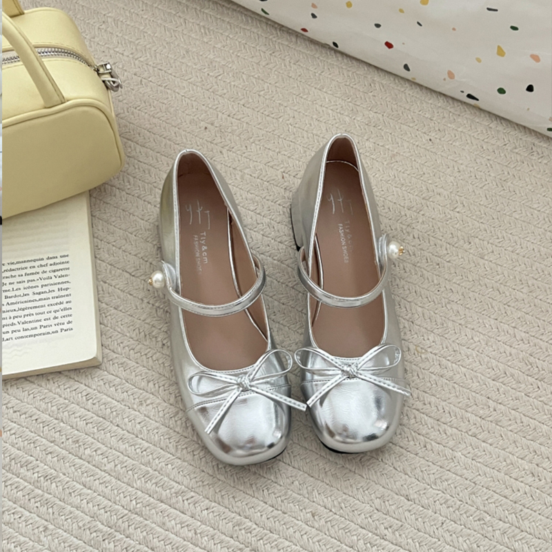 法式 小皮鞋 银色玛丽珍女鞋 女珍珠高跟鞋 浅口芭蕾气质单鞋 2025新款