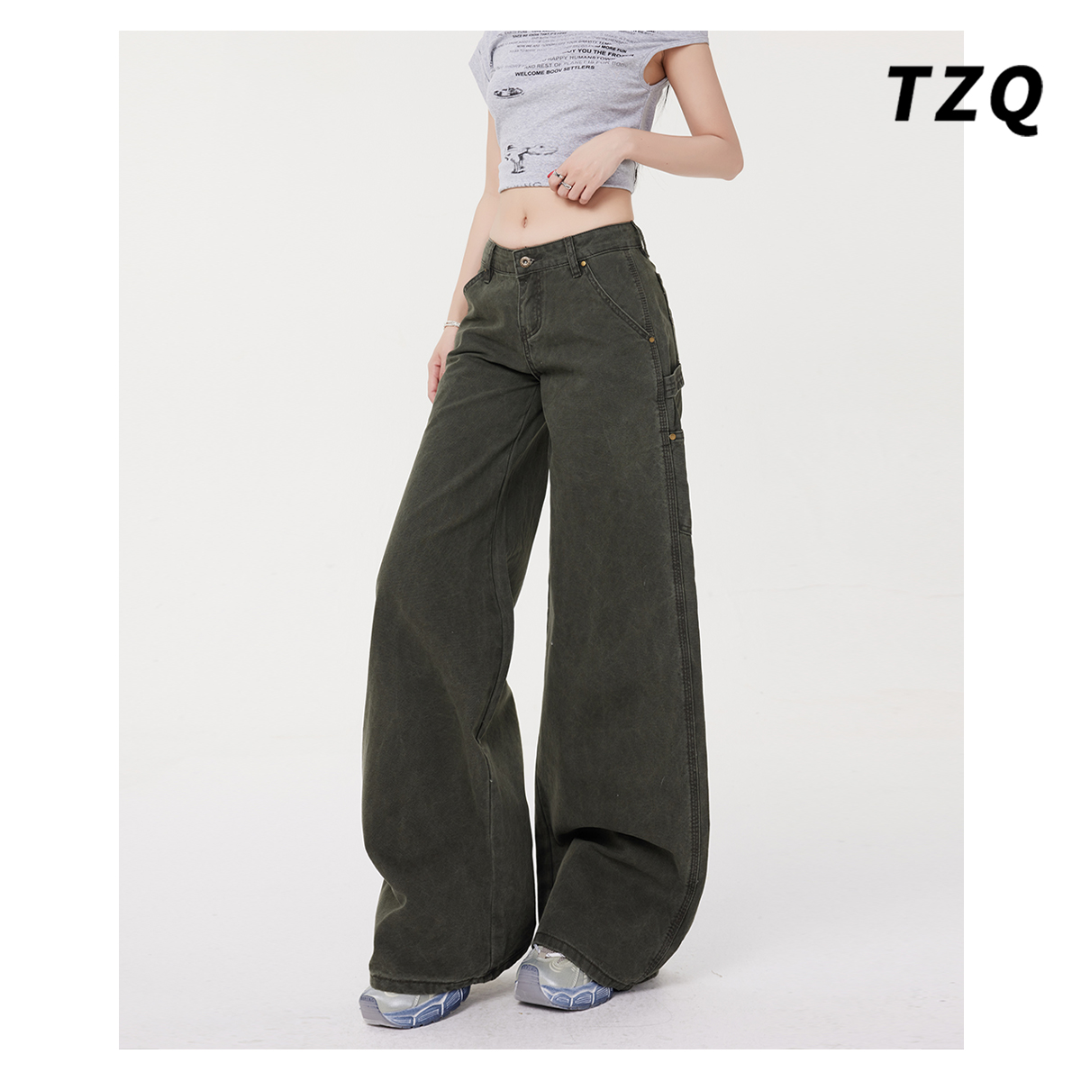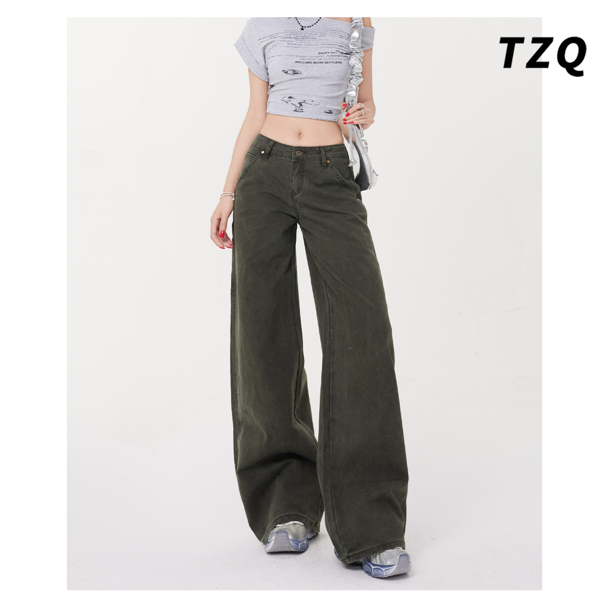 复古高腰宽松显瘦垂感直筒拖地裤 阔腿牛仔裤 秋款 爆款 子 女2025新款