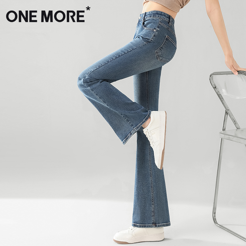 DN79 COCOBELLA复古丹宁高腰水洗微喇牛仔裤 女秋深蓝弹力喇叭裤