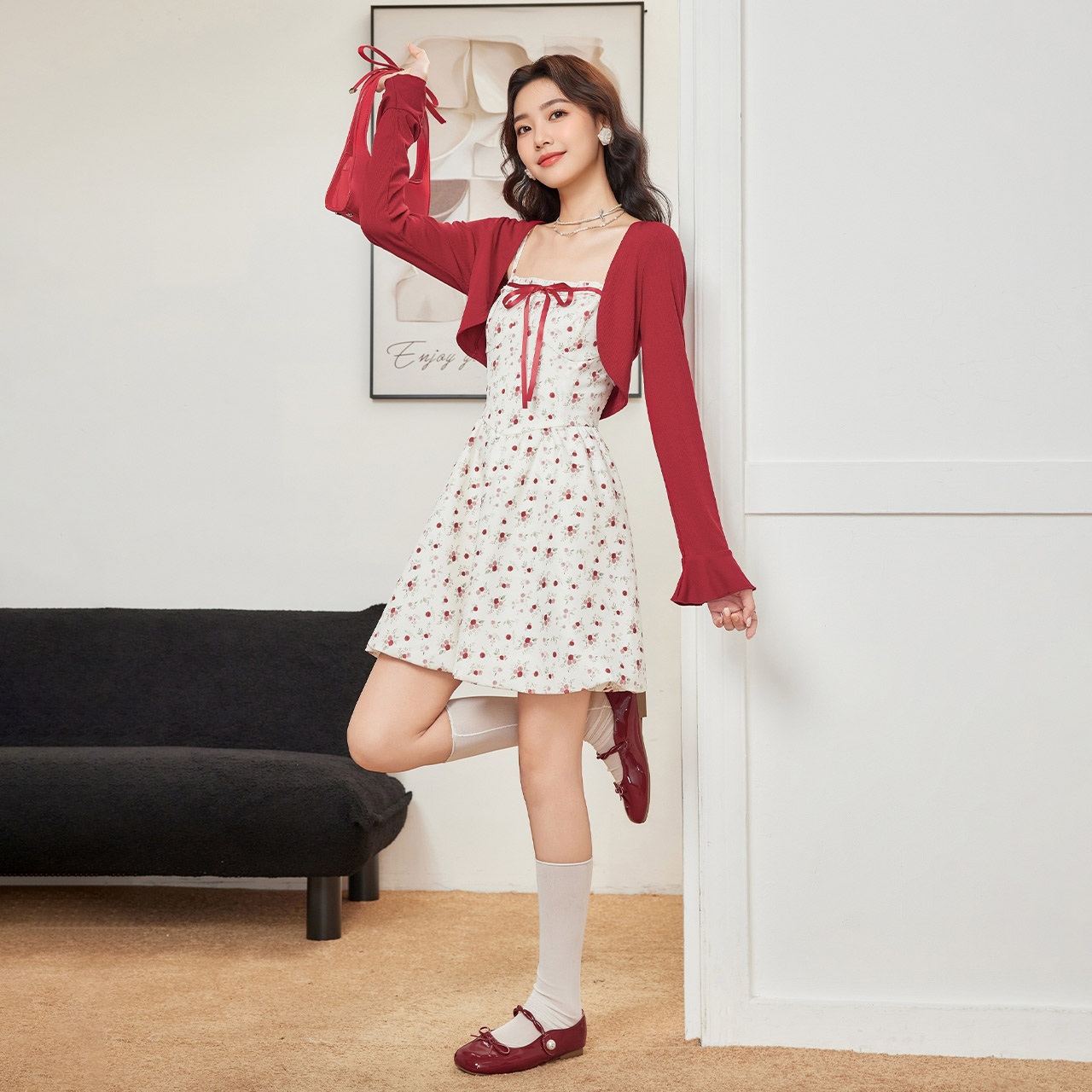 里外套裙 甜美减龄少女风碎花吊带开衫 IEF 爱依服裙子2025夏秋新款