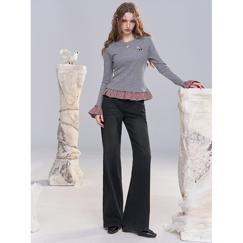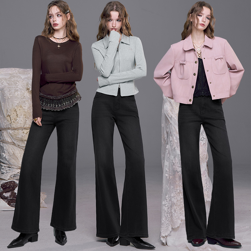 显瘦牛仔长裤 热风女士直筒牛仔裤 翻边直筒修身 新款 子 2025年秋季