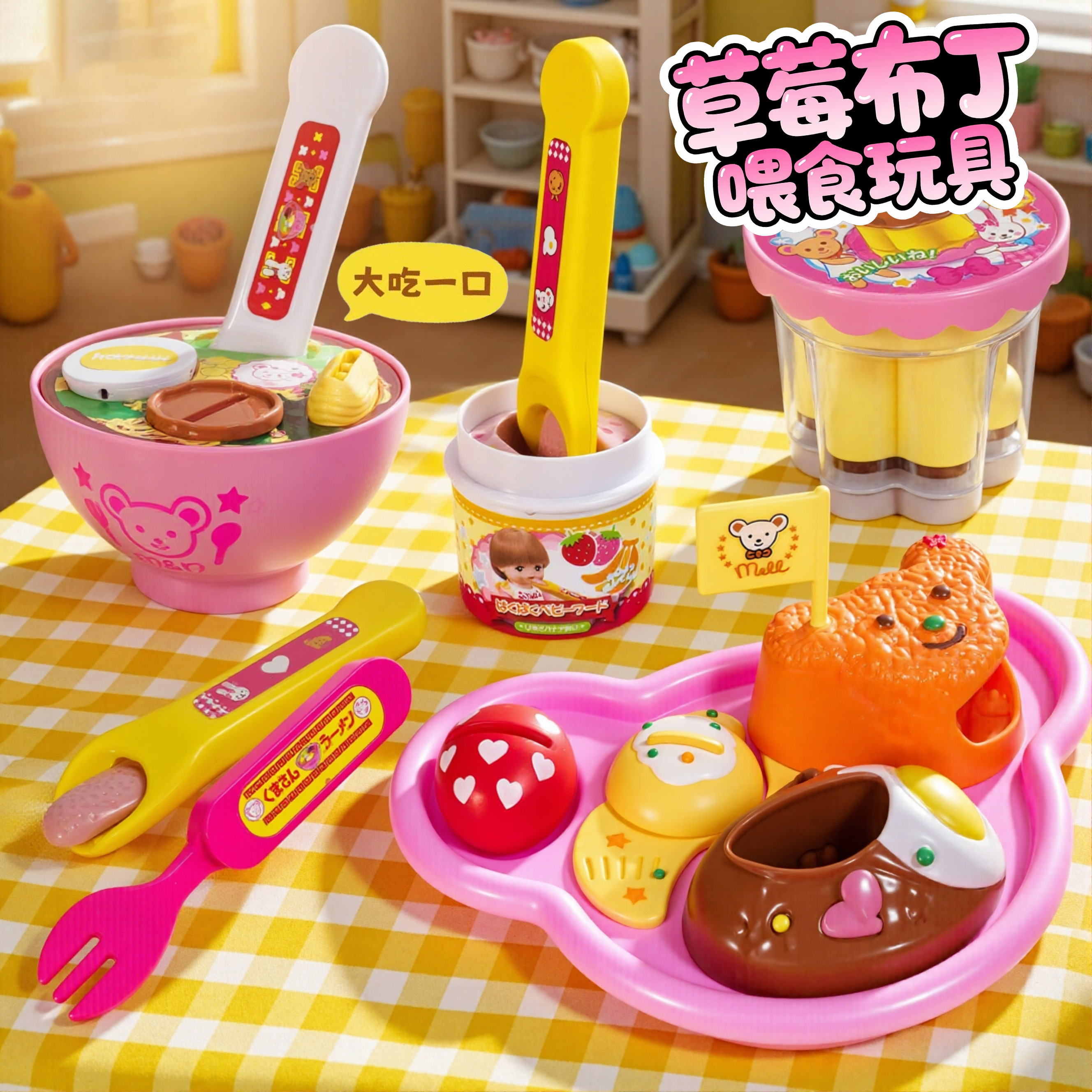 2025新爆款 咪露拉面草莓布丁仿真喂食过家家儿童女孩解压玩具 正版