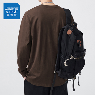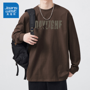 男款 回力白色长袖 纯棉打底衫 春秋上衣男士 t恤男内搭衣服2025新款