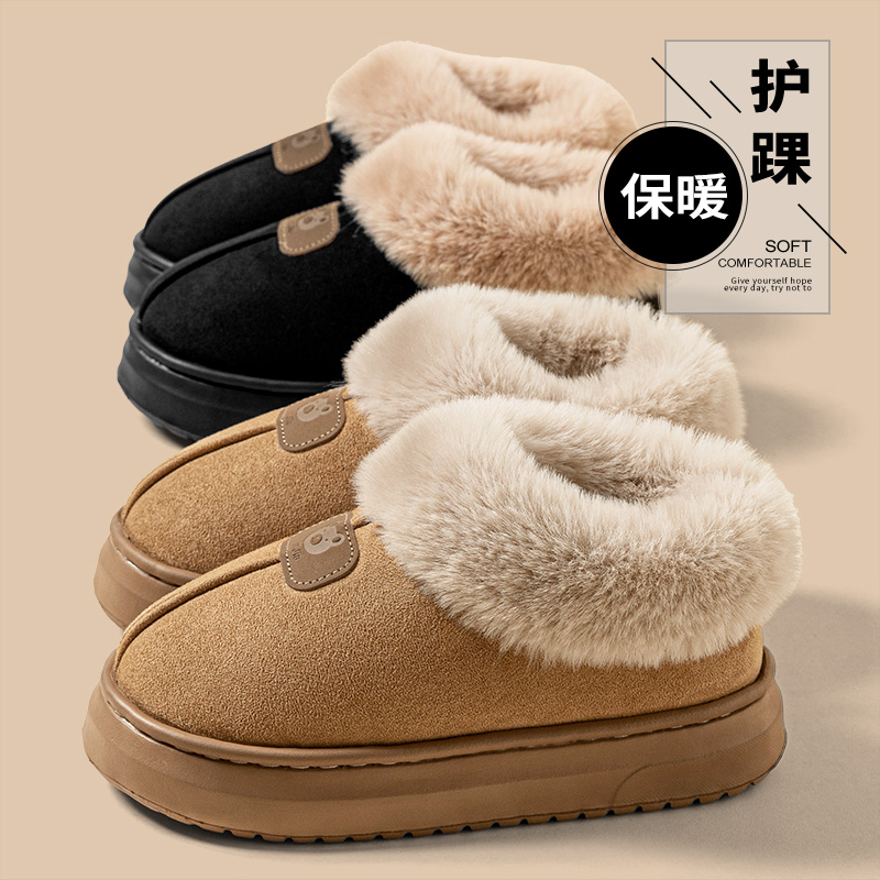 加绒加厚室内家居外穿包跟情侣棉拖鞋 冬季 全包 女2025新款 保暖棉鞋