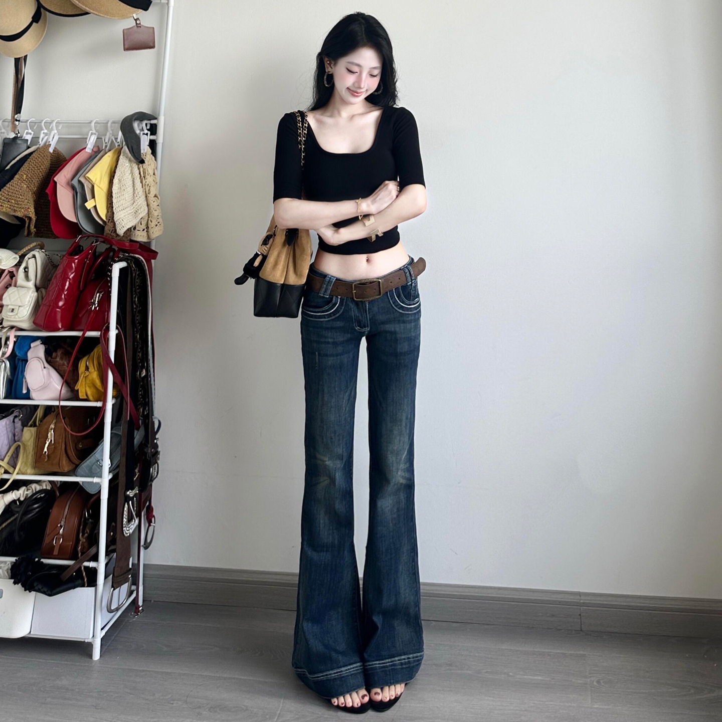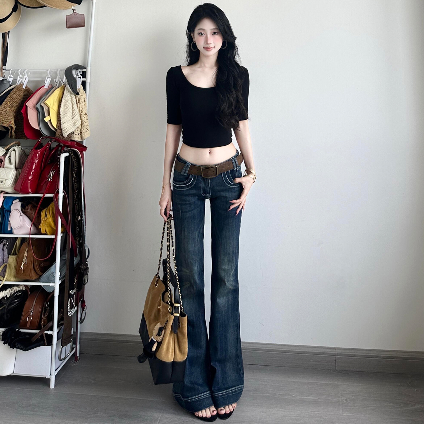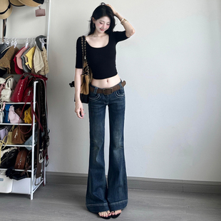 弹力显瘦百搭喇叭裤 美式 修身 女2025早秋新款 子 辣妹低腰微喇牛仔裤